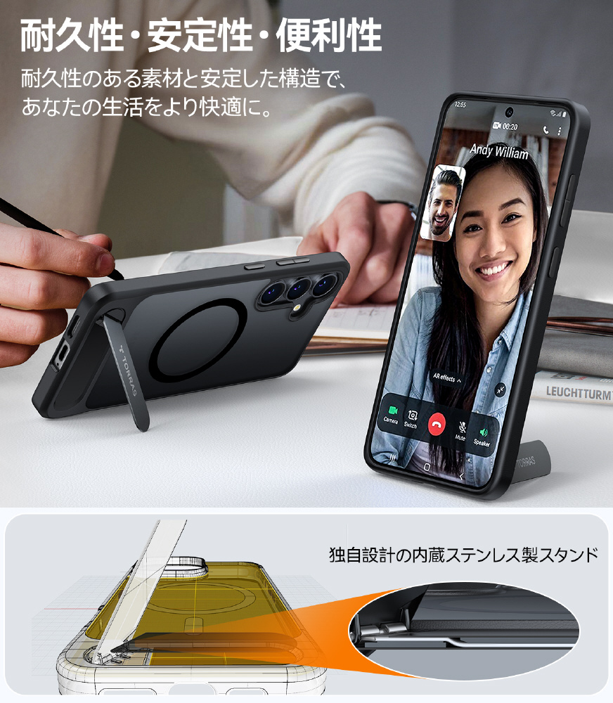 壊れにくいスタンド、1.5倍強力なマグネット、スリムで快適なグリップ感を実現したケース