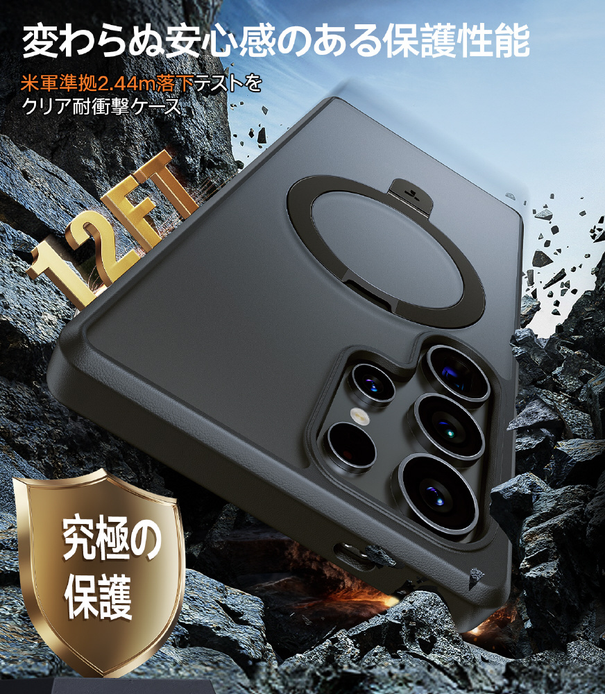・2.44m落下防止性能:エッジ部分の強化保護設計。2倍のMIL耐衝撃性能。