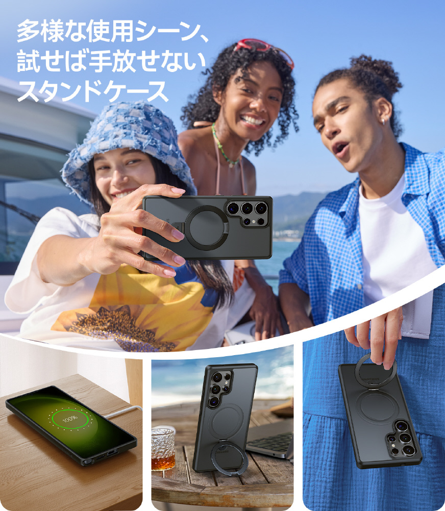 ・折りたたみ可能&目立たないMagSafeスタンド:横置きや縦置きに対応(30,000回以上の開閉テスト済み)
