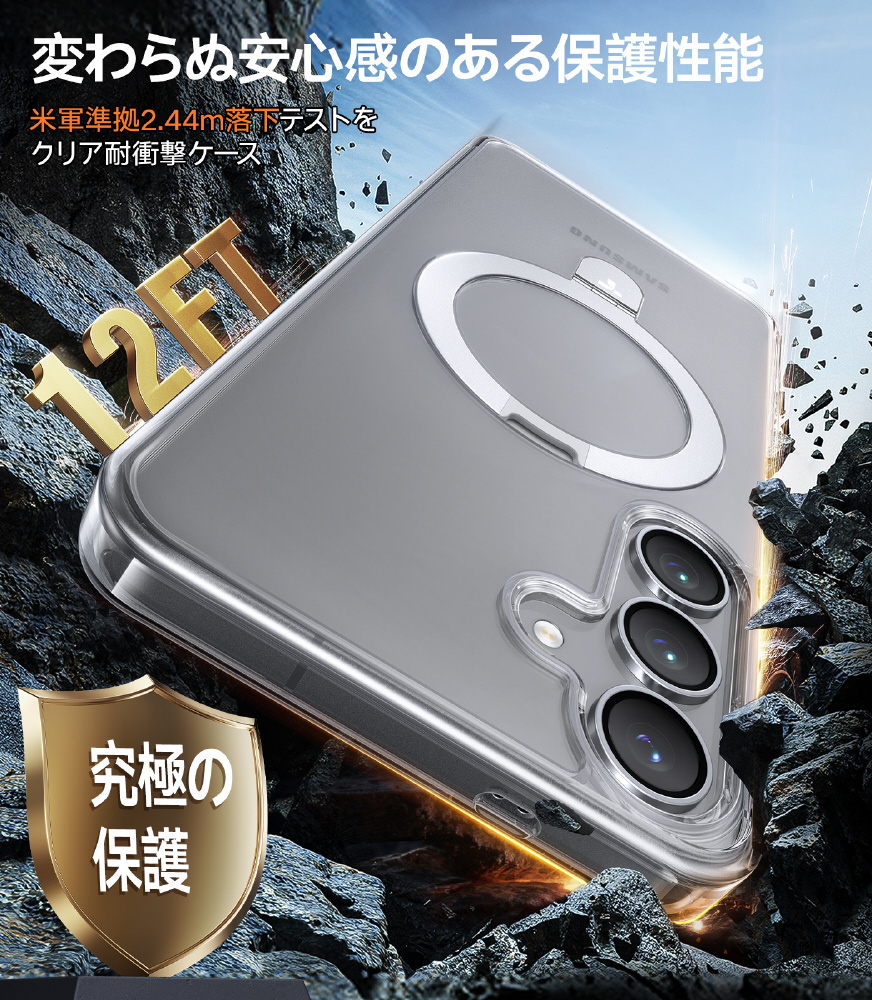 ・2.44m落下防止性能:エッジ部分の強化保護設計。2倍のMIL耐衝撃性能。