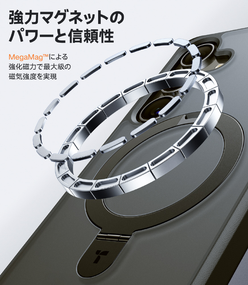 ・TORRAS独自の特許取得済みHalbach磁石技術:内蔵された38個のN52磁石により18Nの吸着力を実現。すべてのMagSafeアクセサリーに対応。