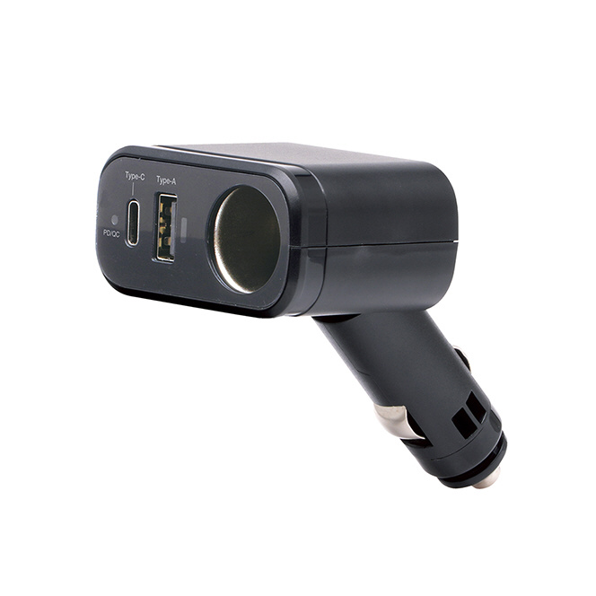 ソケットと急速充電に対応したUSB TYPE-Aポート・TYPE-Cポートを各1個搭載してます