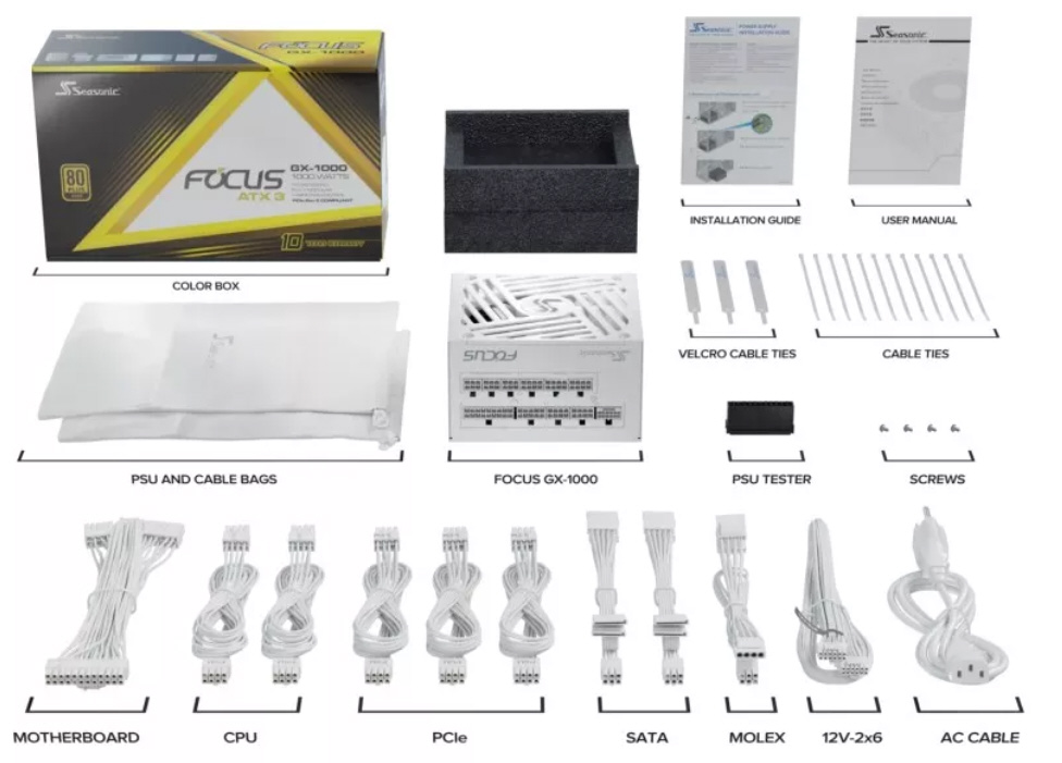 PC電源 Focus GX-1000 ATX3 (V4) - White ホワイト SRP-FGX102-A5A32SF-WH [1000W /ATX/EPS /Gold]