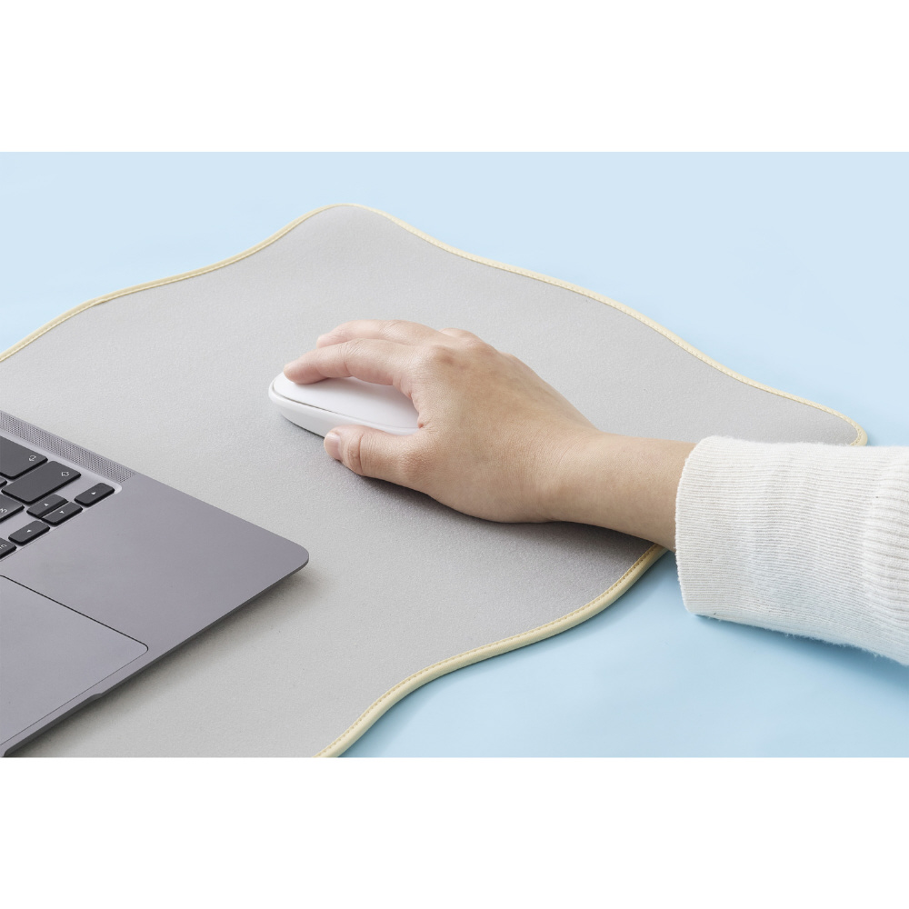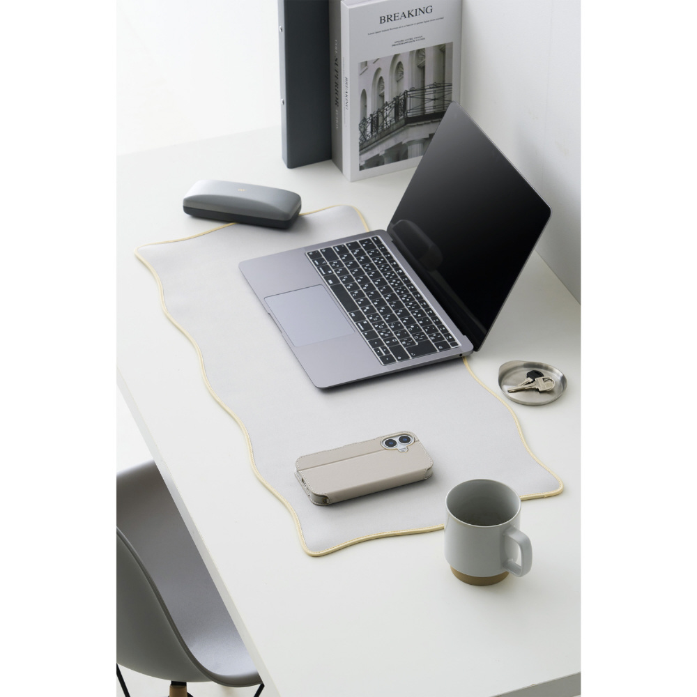 波のようなウェーブラインが個性的なデスクマットです。