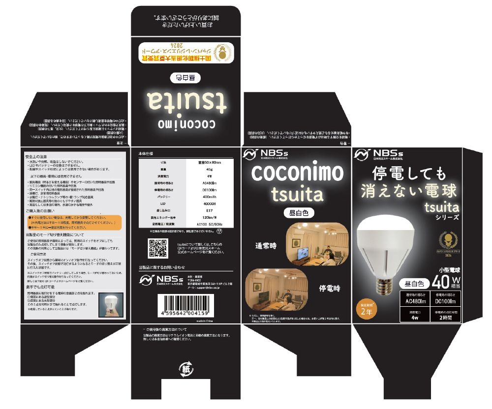 ■バッテリー容量:リチウムイオン電池(400mAh)、停電時2時間点灯