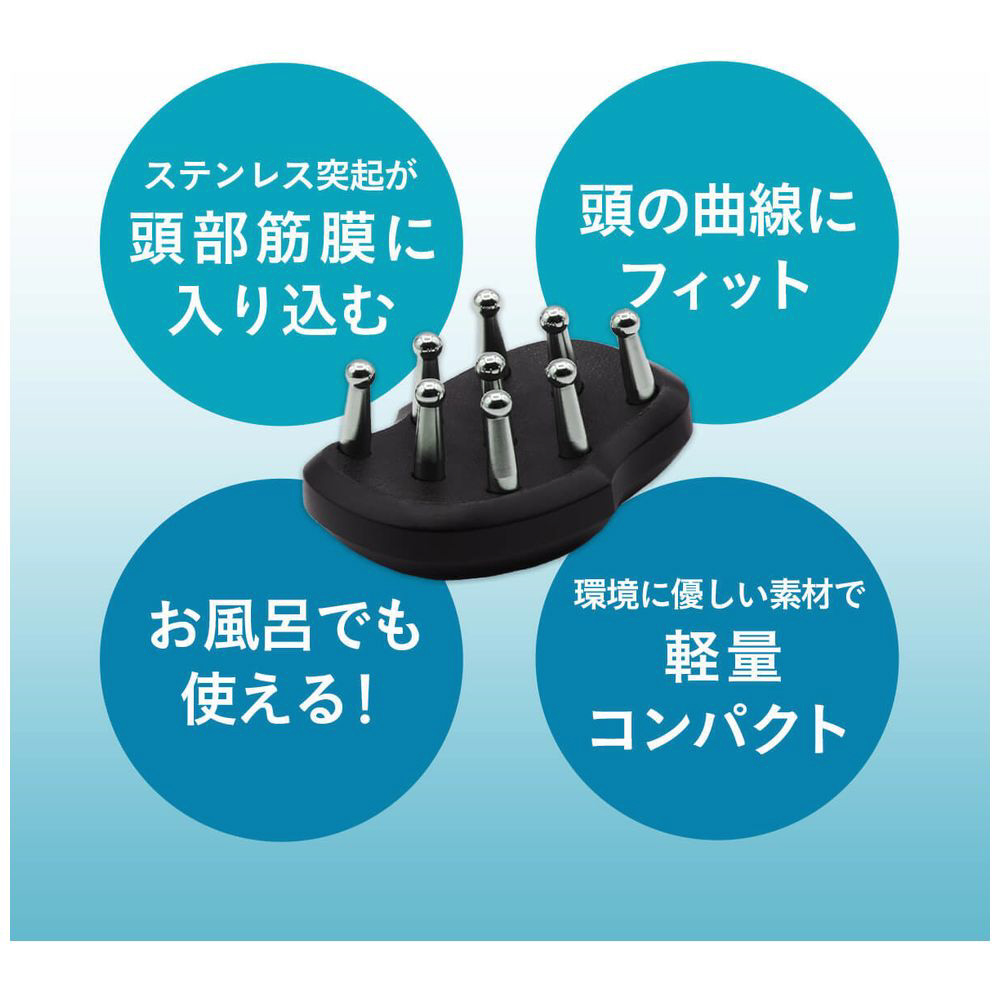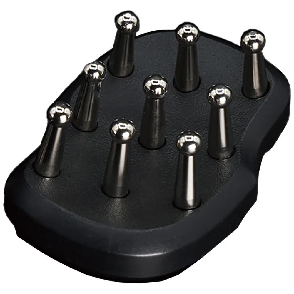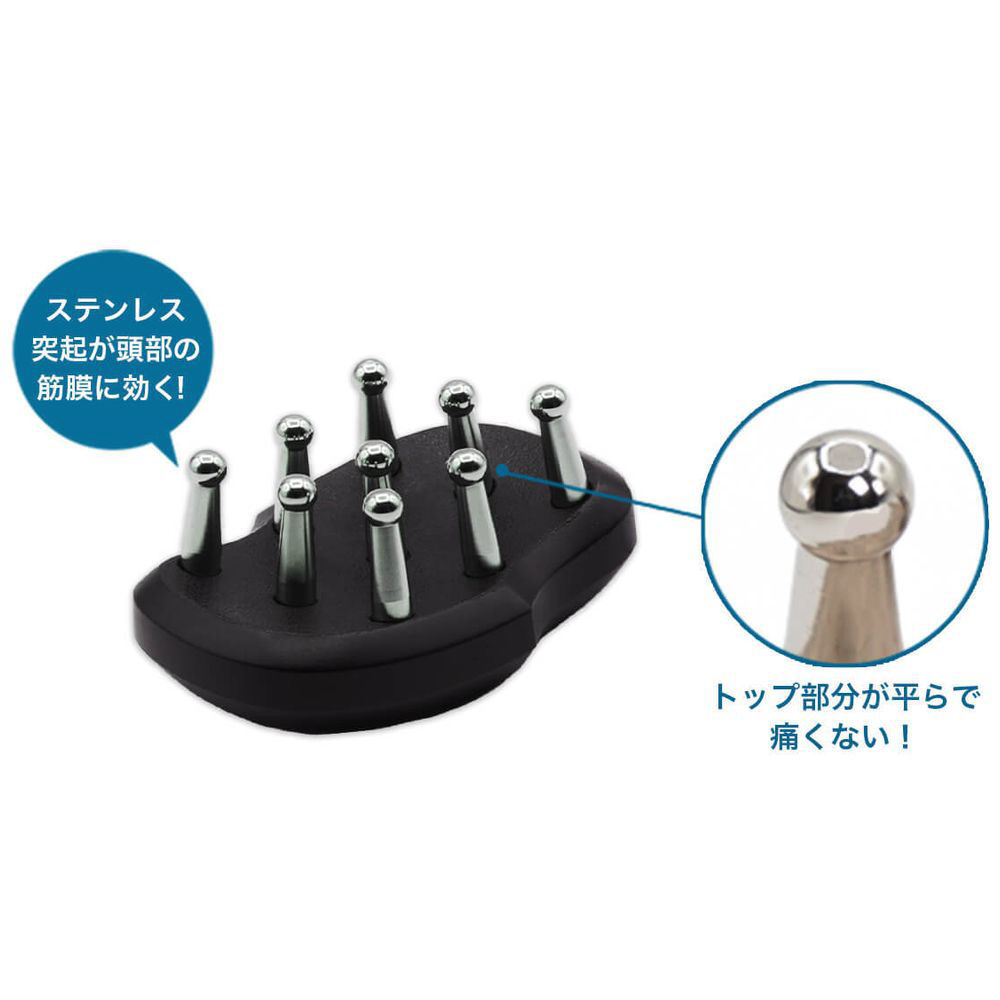 ステンレスの9の突起が頭部筋膜に深く入り込みマッサージ効果を高める筋膜リリースギア。