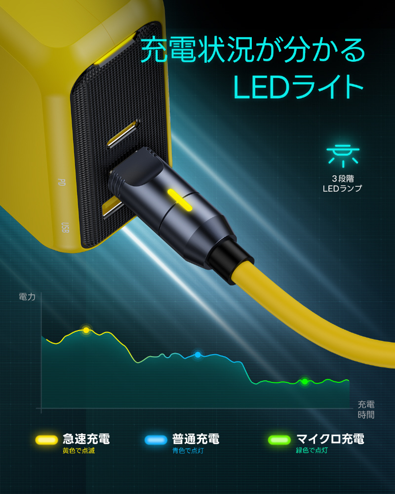 充電状態を「黄/青/緑」の3段階でお知らせします。