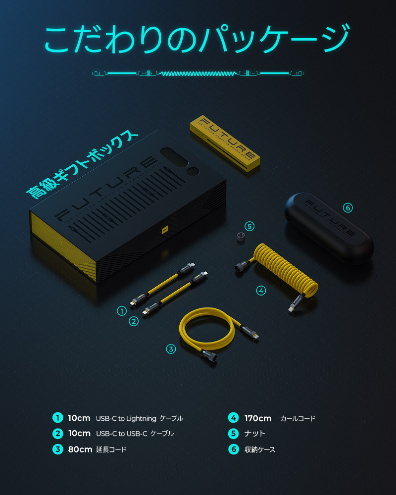 FUTURE PRO パワーケーブルセット ハイエンド ケーブルセット 240W急速充電 (AC付属なし) PD3.1搭載 USB C-C,USB C-Lighting 最大480Mbpsデータ転送