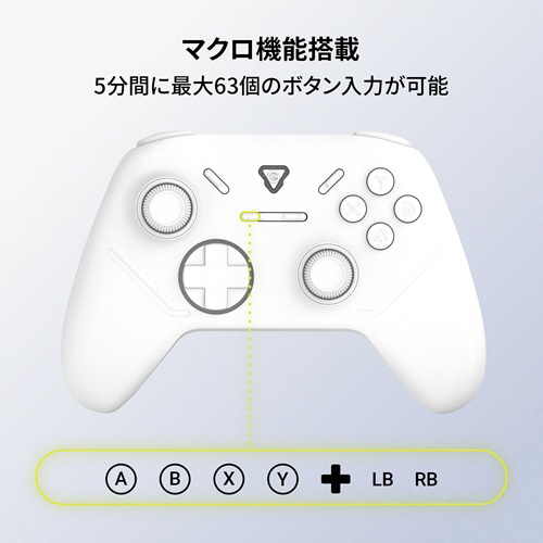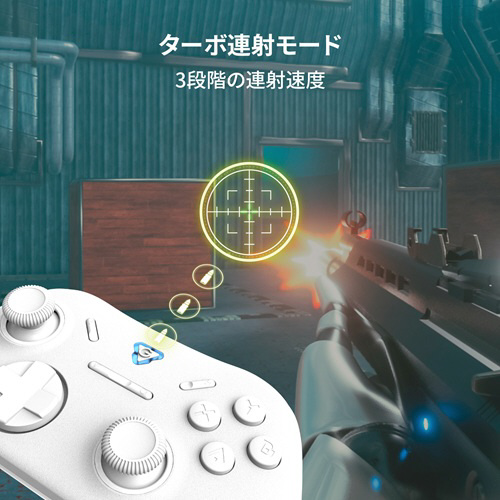 ソフトウェアによる設定変更ではなく、ゲームパッド単体操作で振動機能の強弱、OFFや ターボモード、マクロ機能、パッド操作に非対応なゲーム時にマウス・キーボード入力モードへの切り替えが可能です。