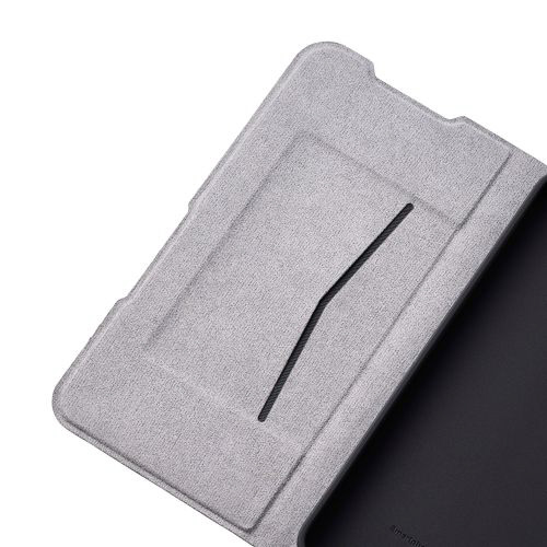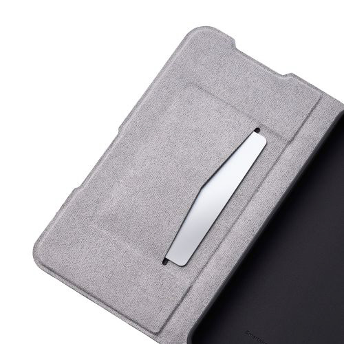 不使用時に画面部分をカバーする、横開きタイプのフラップが付いています。