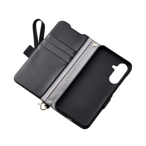 Galaxy A36 5G ( SC-54F ) ケース レザー カバー 手帳型 マグネット フラップ 衝撃吸収 スタンド機能付 ハンドストラップ付 ブラック PM-G254PLFY4BK