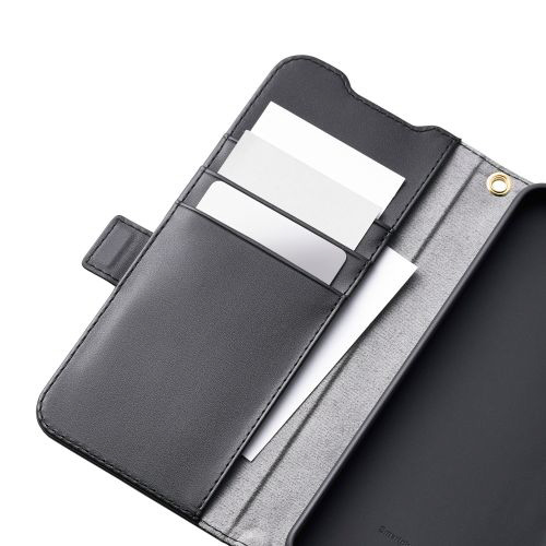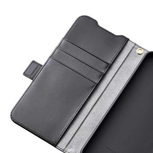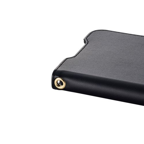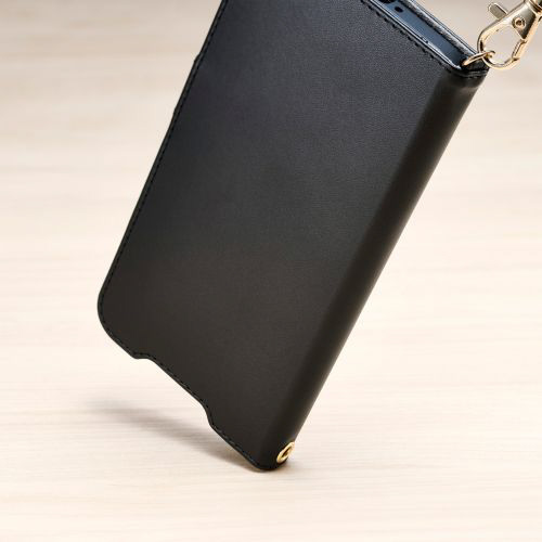 4つのカードポケットを備えた、ハンドストラップ付きソフトレザーケース(手帳型)です。
