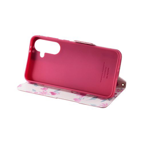 Galaxy A36 5G ( SC-54F ) ケース レザー カバー 手帳型 マグネット フラップ 衝撃吸収 超軽量 薄型 ストラップホール付 スタンド機能付 花柄 UltraSlim ピンク PM-G254PLFUJPND