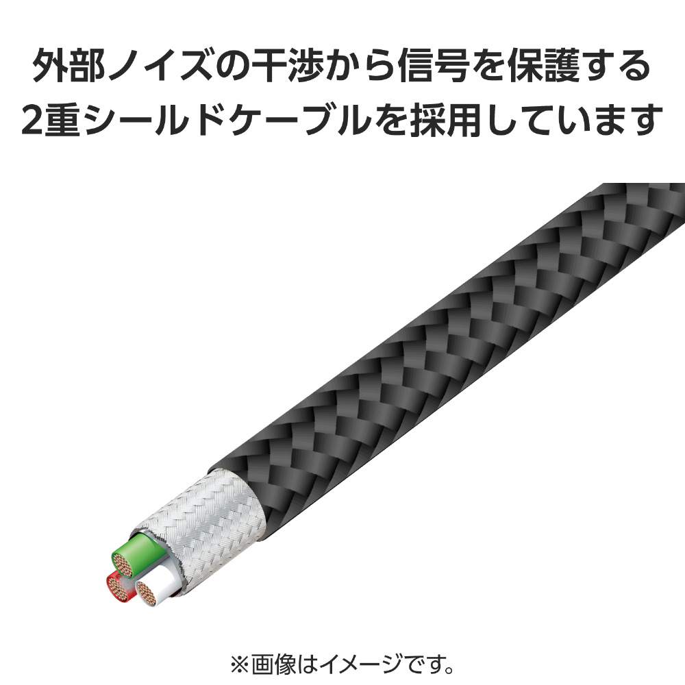 外部ノイズの干渉から信号を保護する、2重シールドケーブルを採用しています。