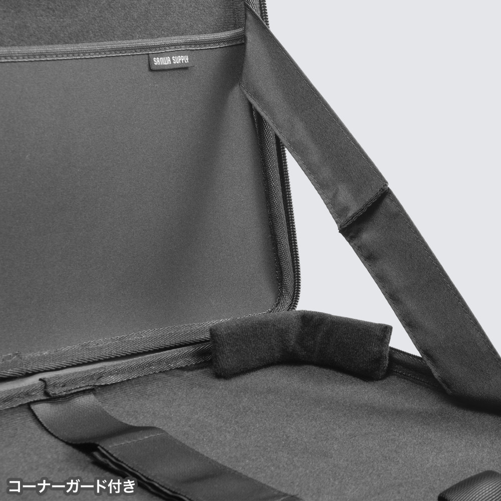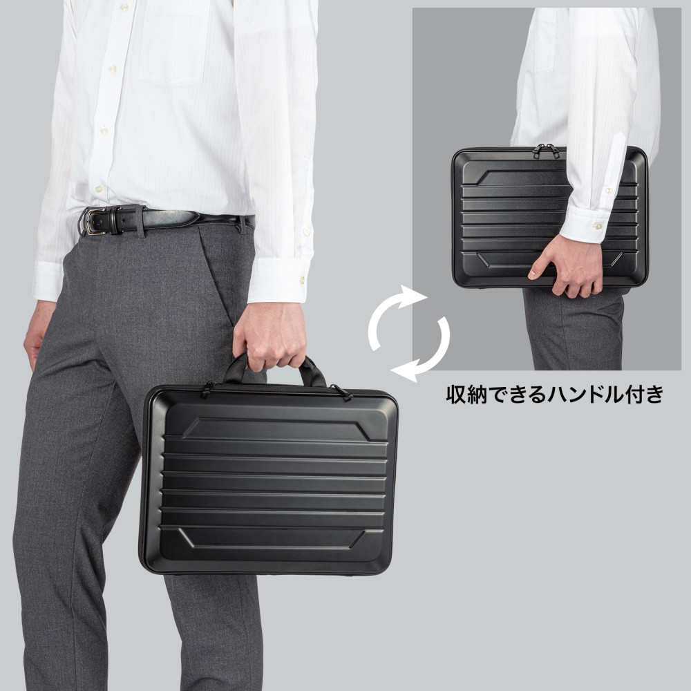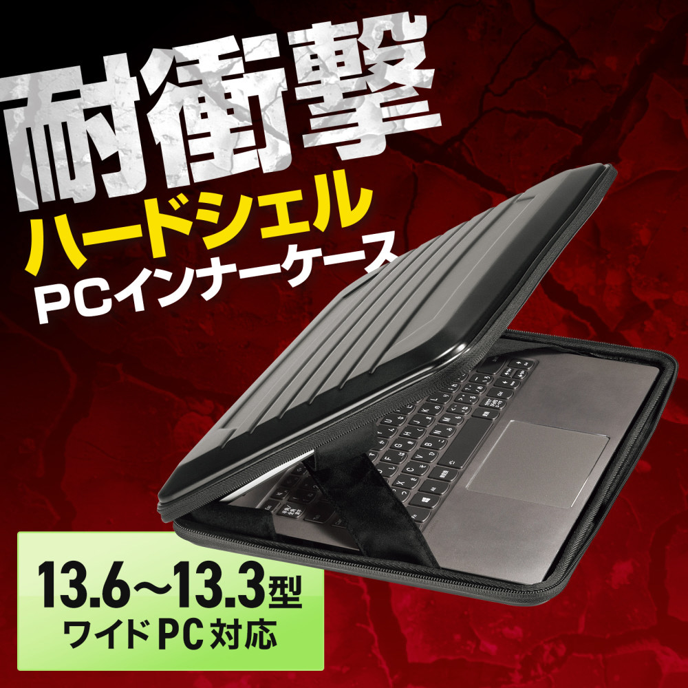 外部からの衝撃や圧迫に強いハードシェルケース。13.3型ワイド〜13.6型ワイド対応。