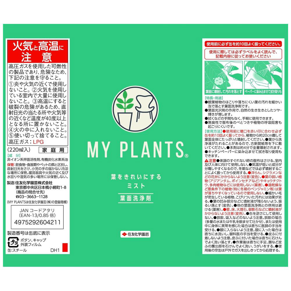 ・観葉植物のほこりや落ちにくい葉の汚れを細かい泡で落とす葉面洗浄剤です