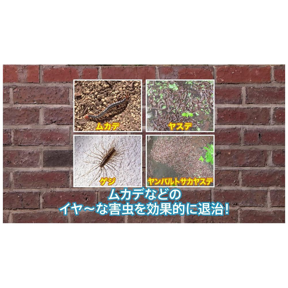 ・こまかい粉がムカデ、ヤスデ、ゲジなどイヤな虫にまとわりついてしっかり速効退治
