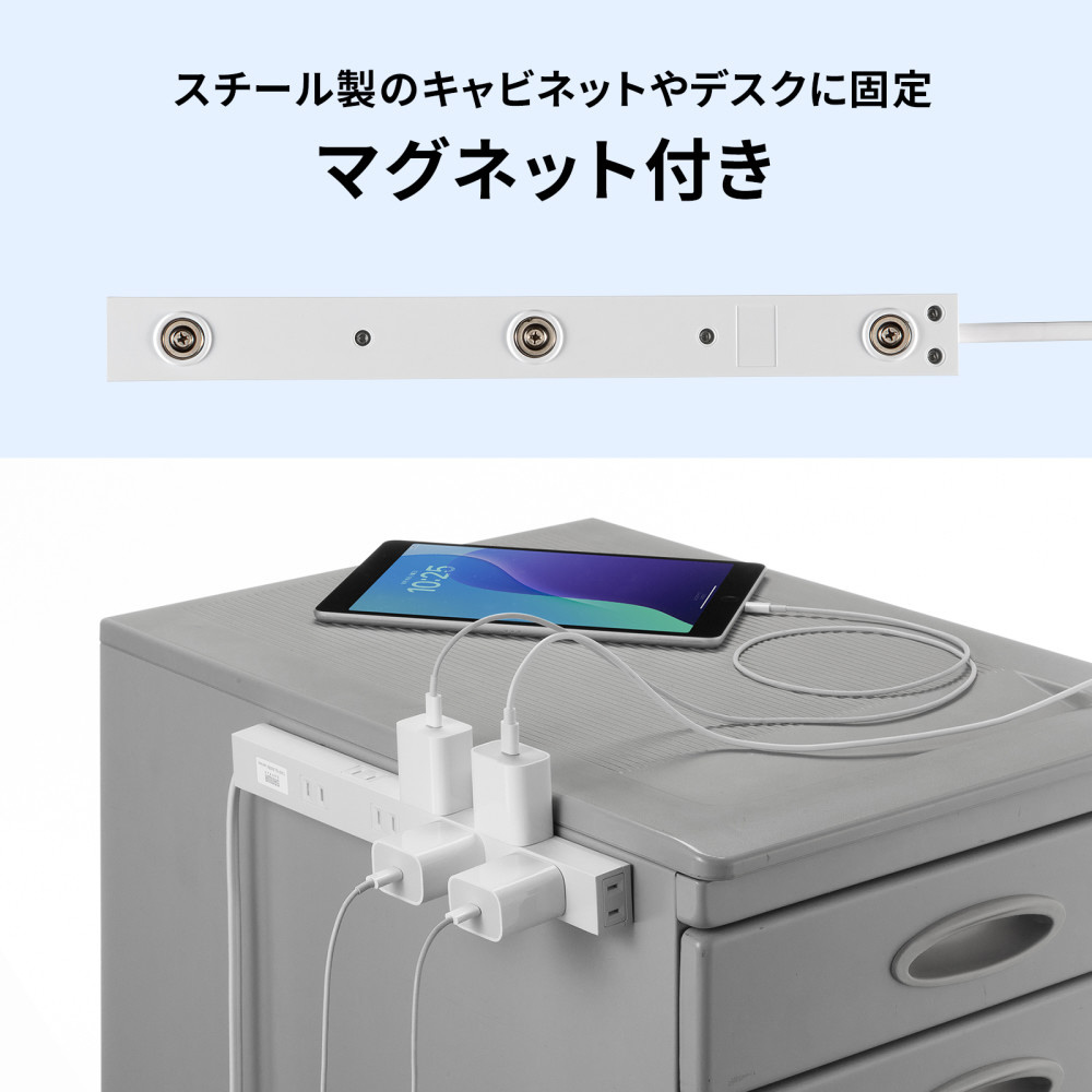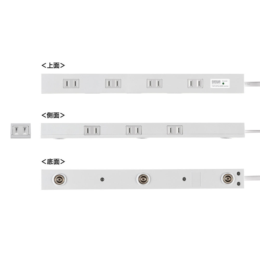 ●上面&側面交互差込口レイアウトでACアダプタ接続に便利なスリムタイオプの電源タップです。
