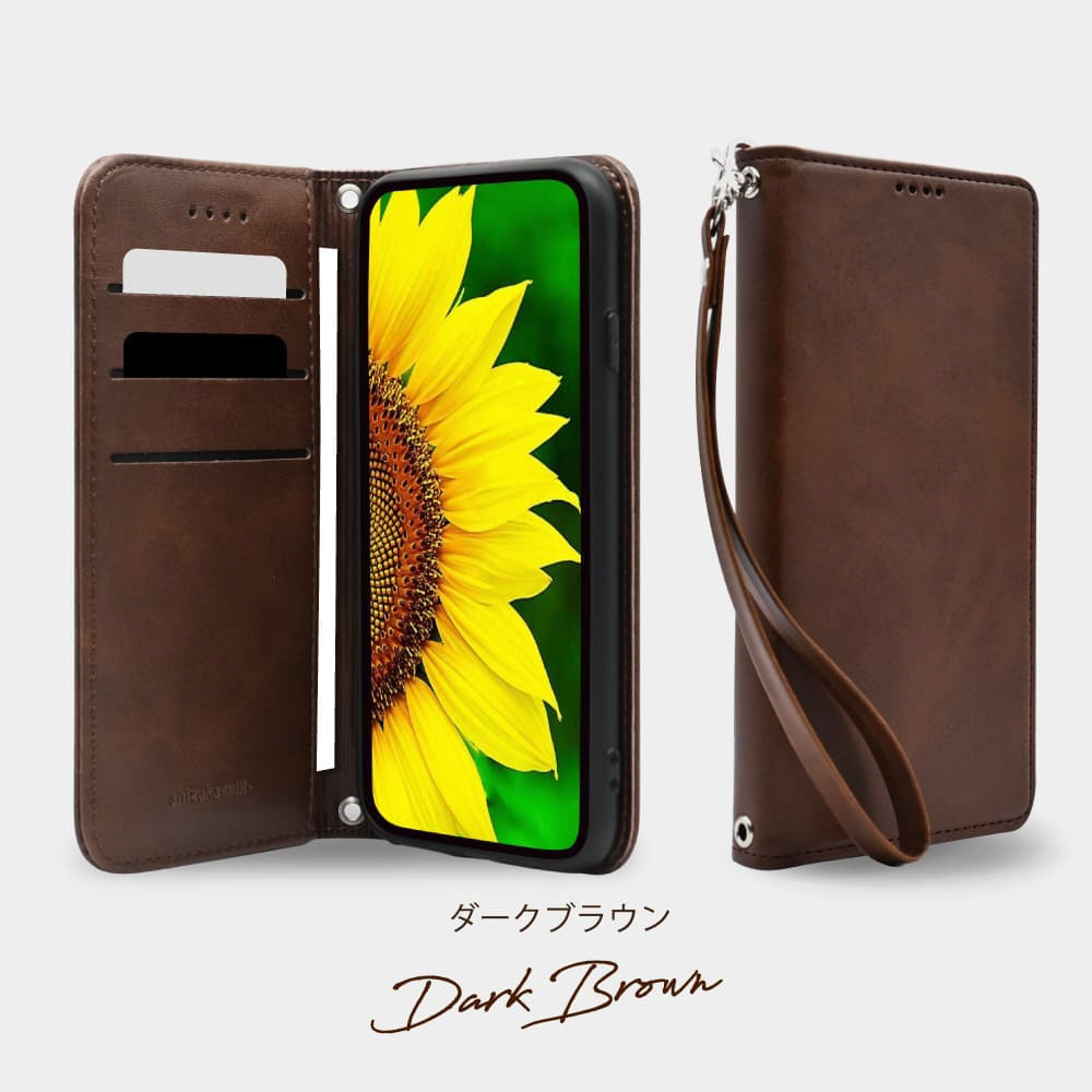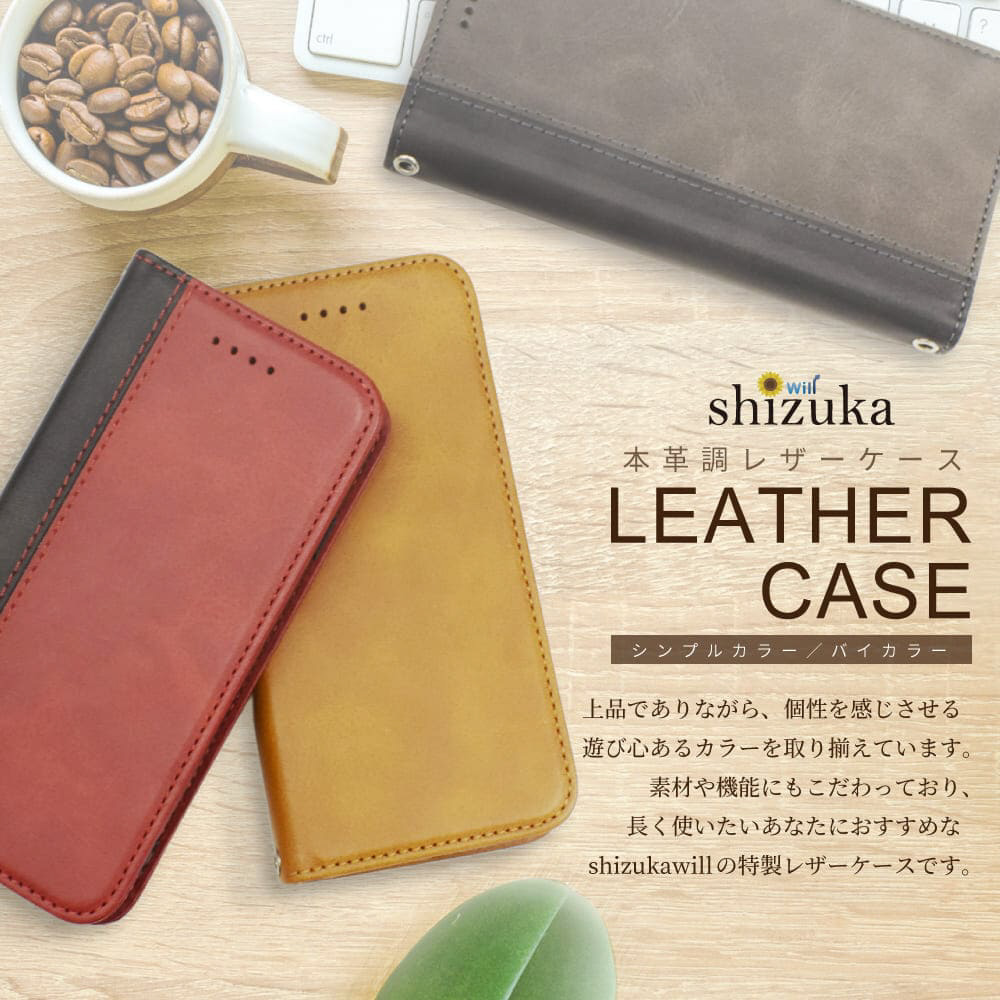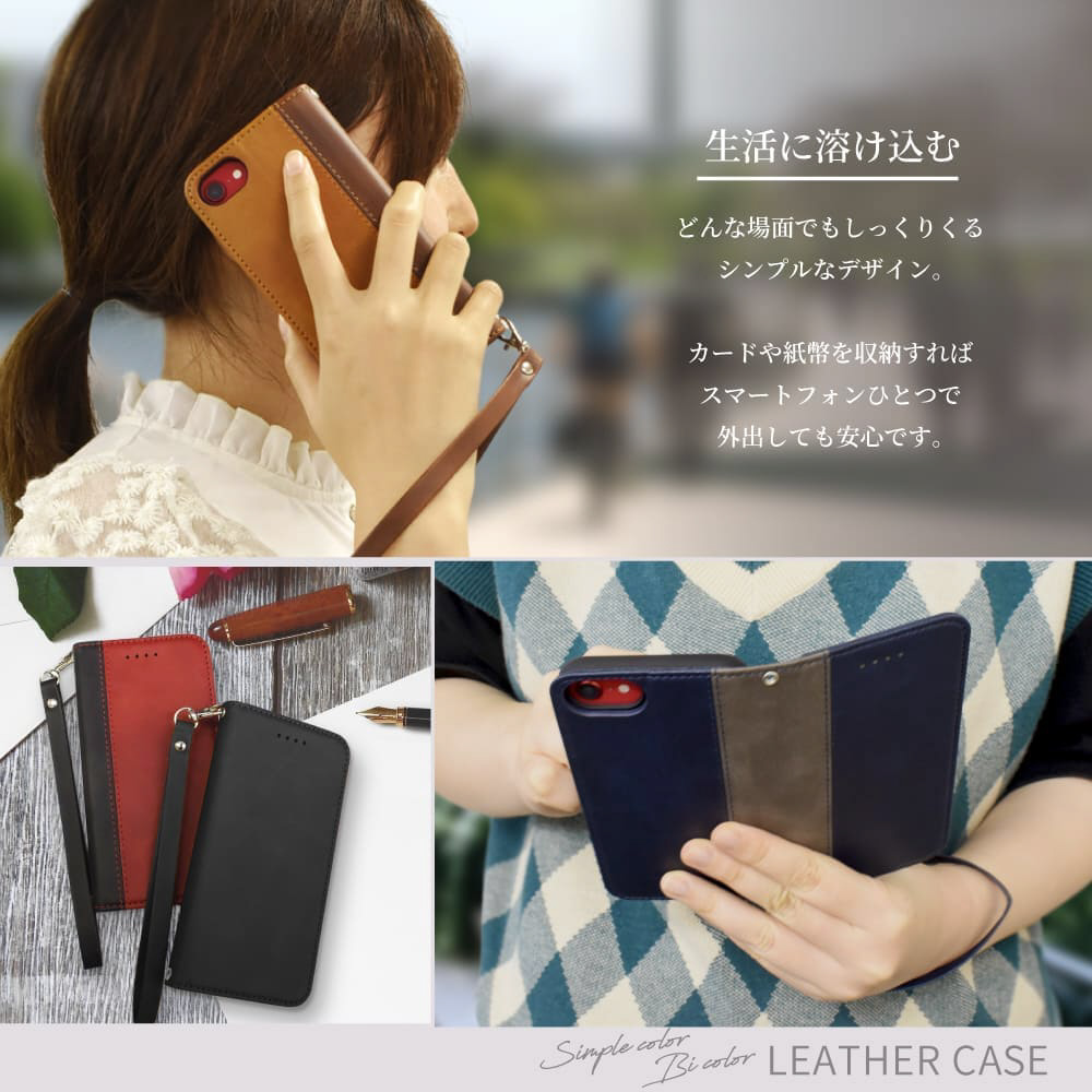 本革調なのに高級感を演出してくれるフェイクレザー手帳型ケース!シンプルさゆえに日常からビジネスまで幅広い場面でご使用頂けます