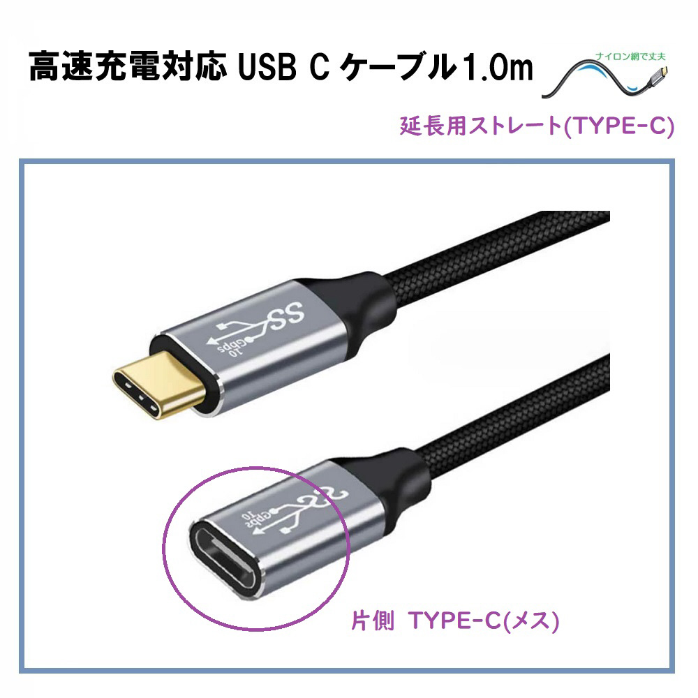 「延長用 USB TYPE-C ケーブル1.0m(高速充電対応) 」