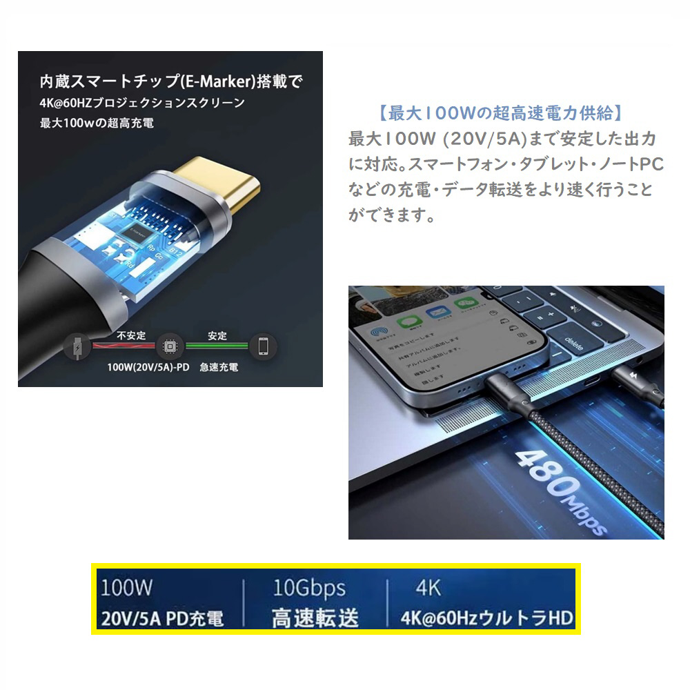 ■スマートフォン・タブレット・ノートPCなどの充電・データ転送を効率よく高速で行うことができるケーブルです。