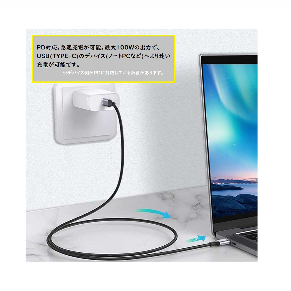通常のUSBケーブル充電よりも早い最大5A/100Wの高速充電に対応しています。