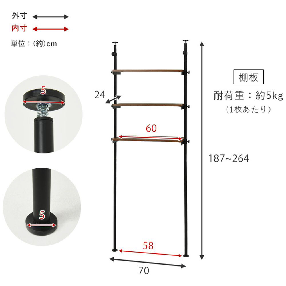 仕様1 ■フレーム: スチール、棚板: <ブラウン/ブラック>プリント紙化粧繊維板、<ナチュラル/ホワイト>プリント紙化粧繊維板、<ホワイト/ホワイト>メラミン樹脂化粧繊維板