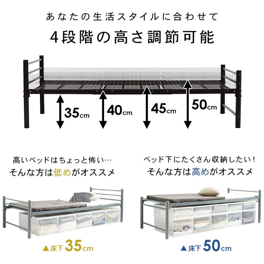 敷布団がそのまま使えるロングサイズ。床面下に収納ができ、ニュアンスカラーが豊富なオシャレなベッドです。
