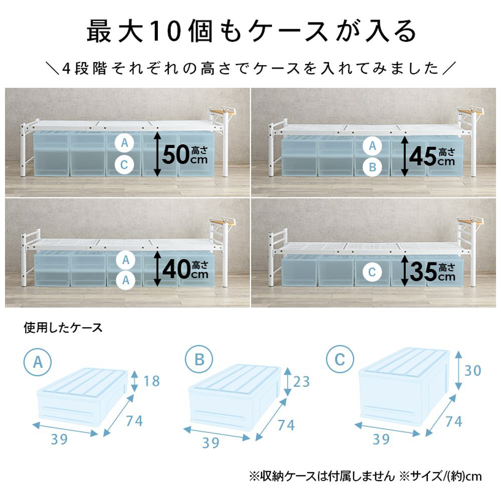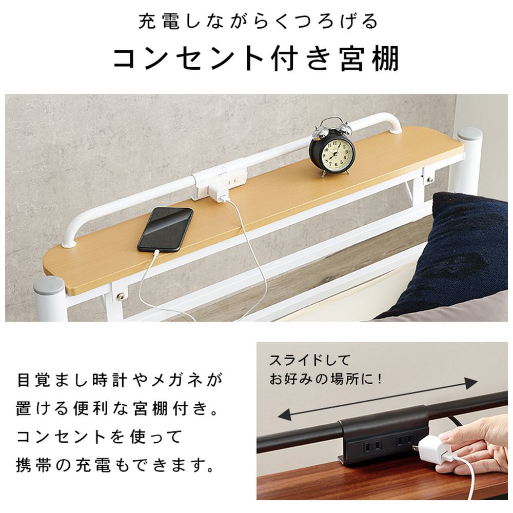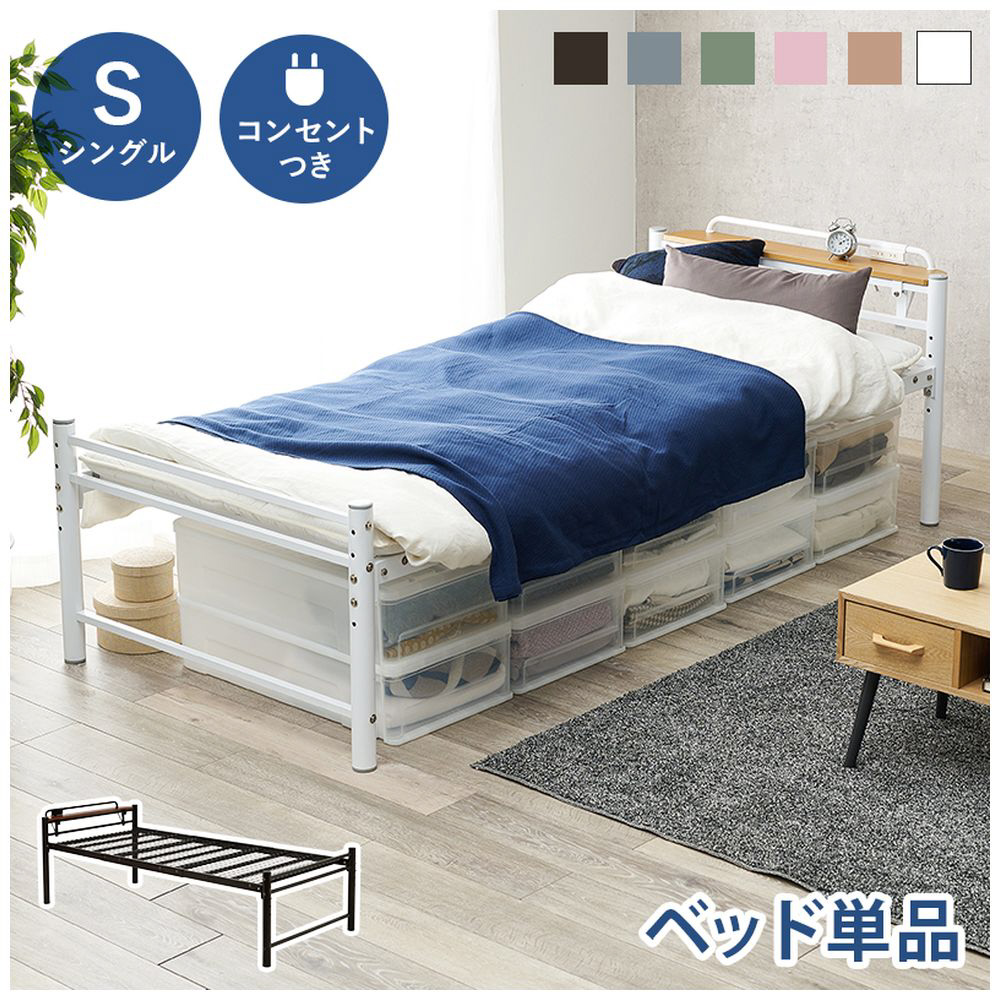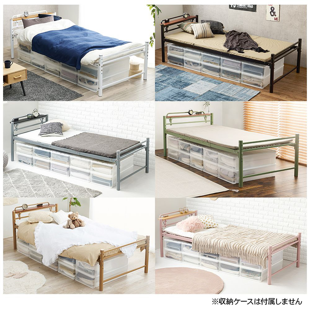 敷布団がそのまま使えるロングサイズ。宮棚が取り外せてカラーが豊富なオシャレなベッドです。