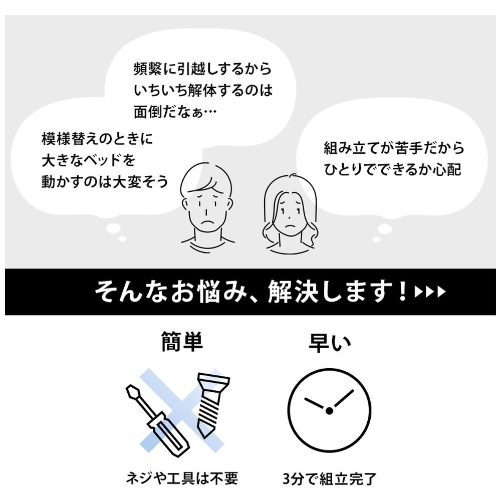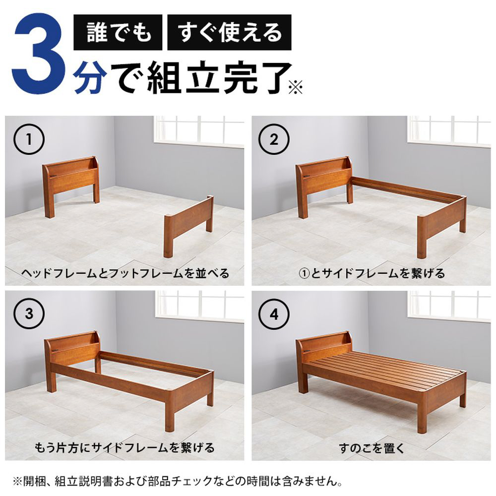 ネジなし、工具不要で簡単組立。床面高さも3段階から選べる宮付き木製ベッド