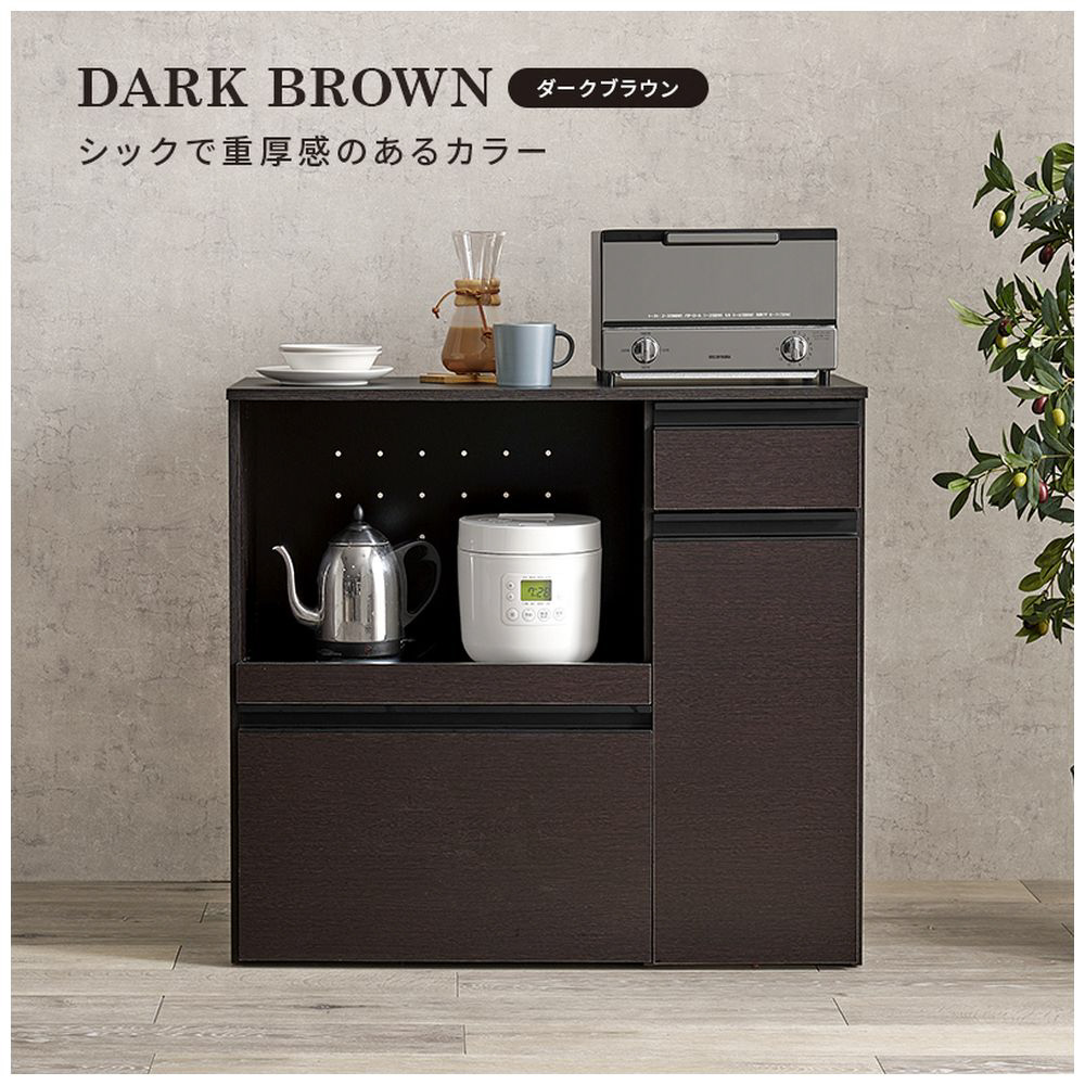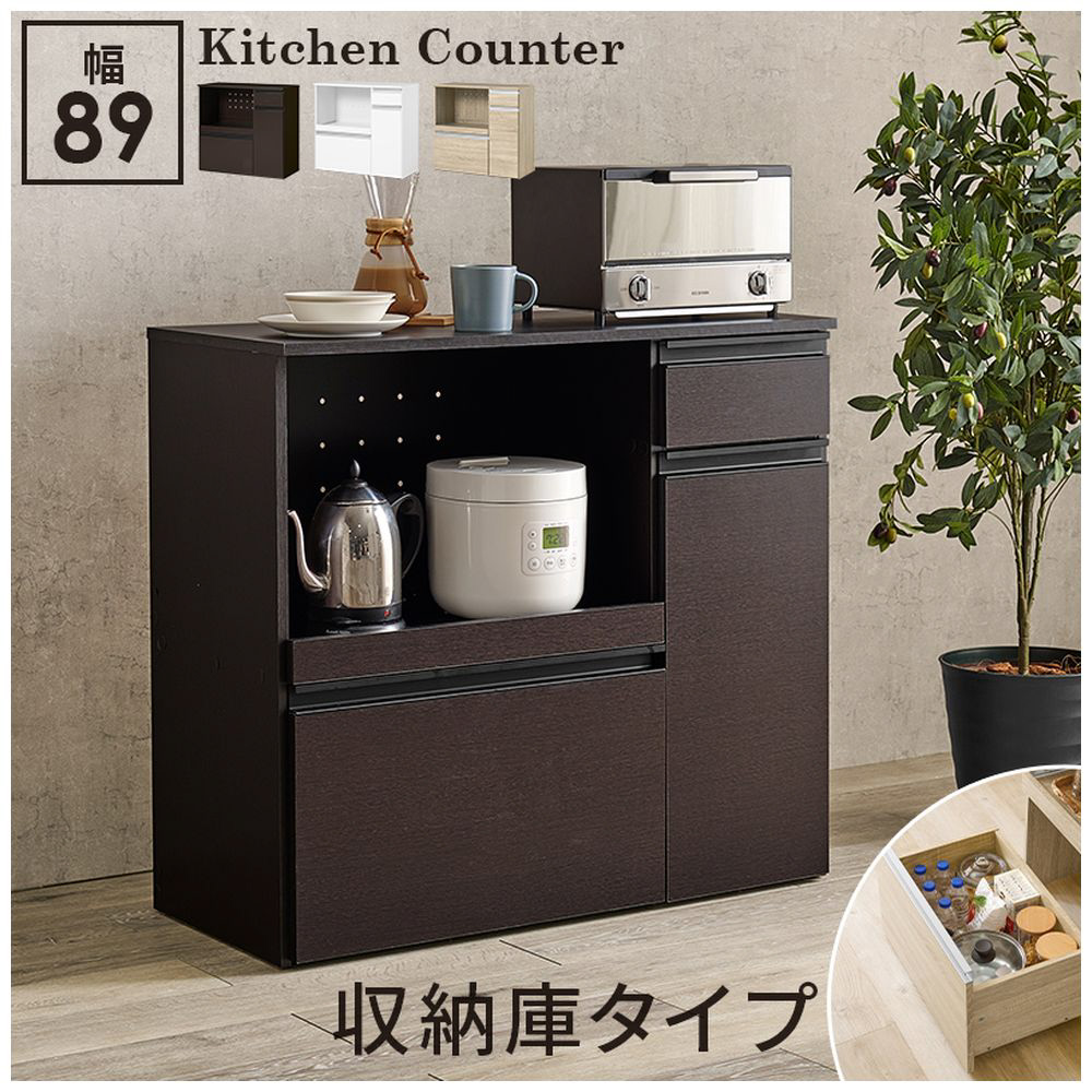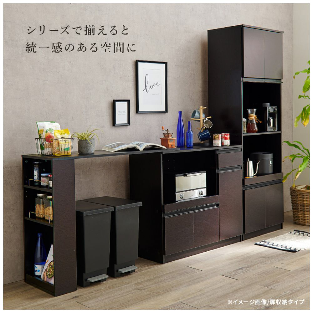 立って作業がしやすい天板高さのカウンターキャビネット。食器や調理器具、キッチン家電がスッキリ片付く大容量収納です。ワゴン収納庫タイプ