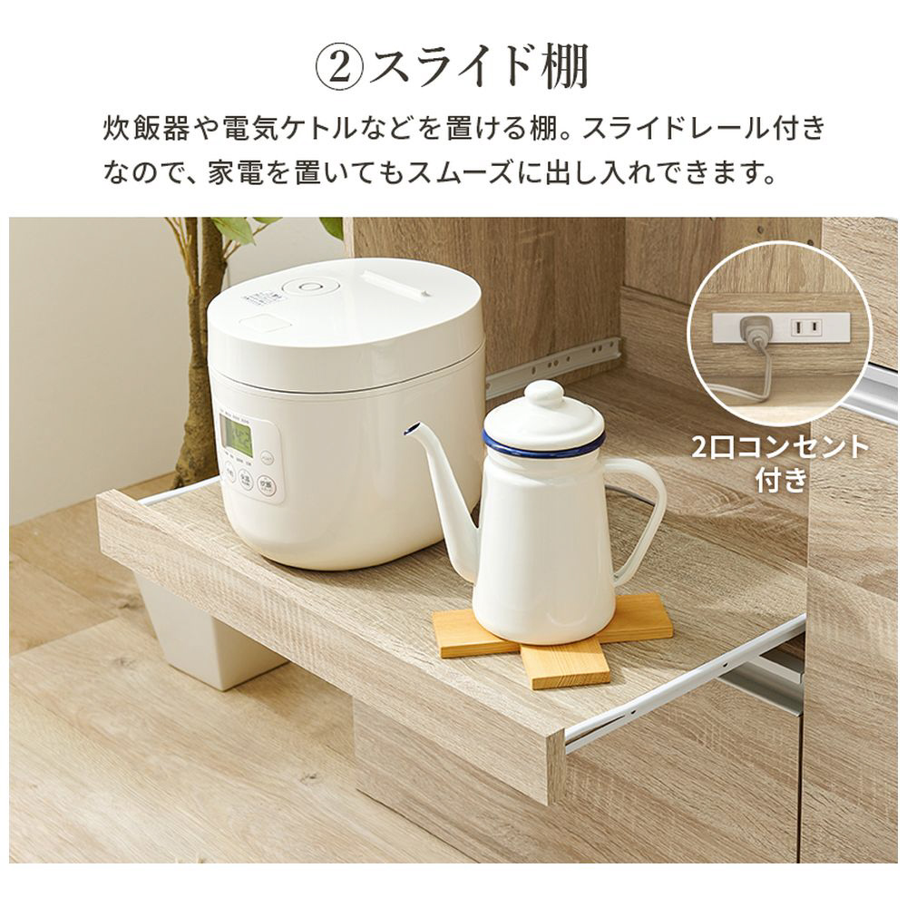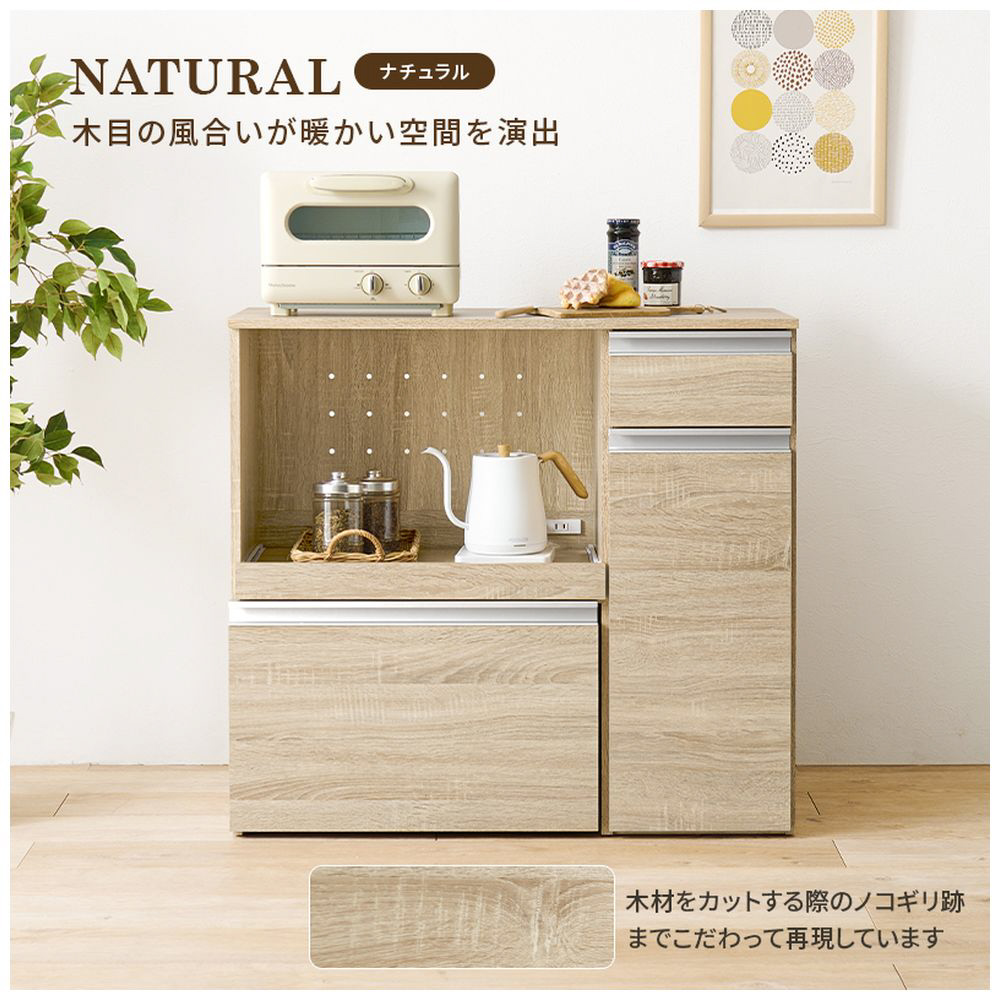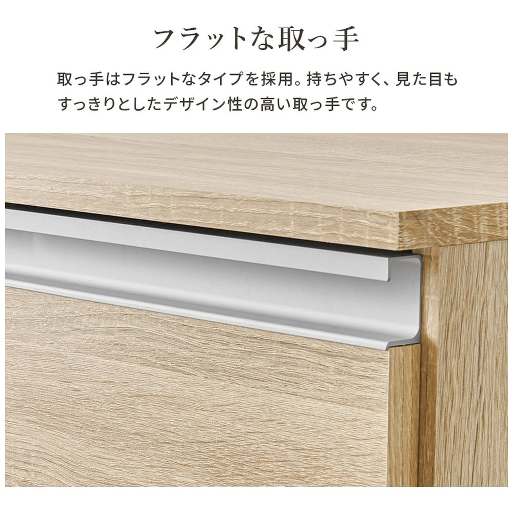 仕様1 ■主材: プリント紙化粧パーティクルボード、天板・スライド棚: 合成樹脂化粧パーティクルボード(メラミン樹脂)、取手: スチール