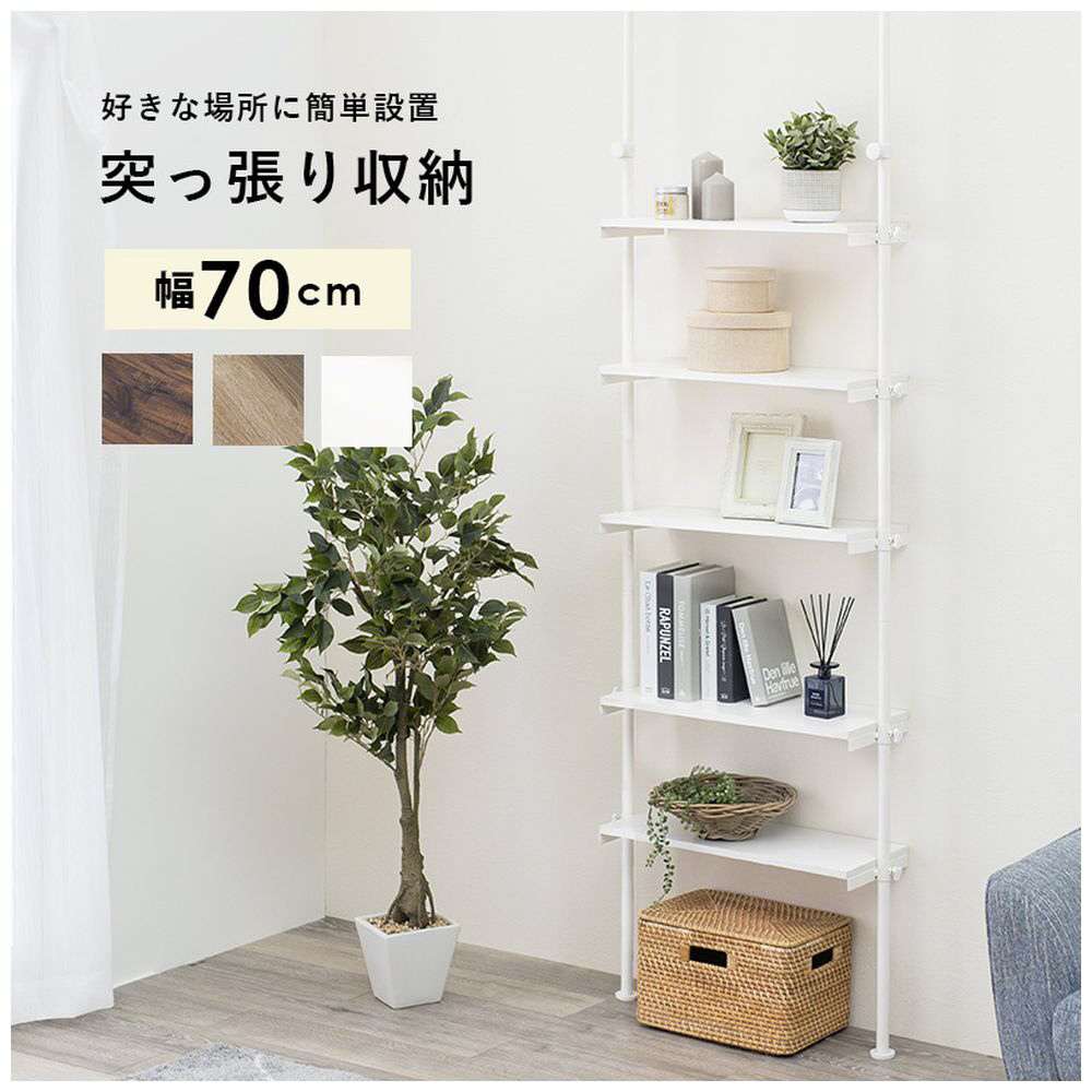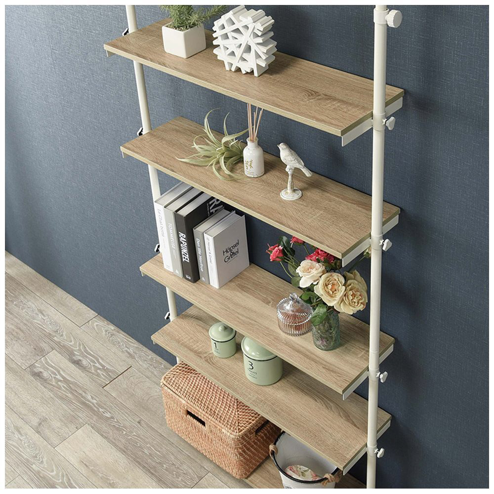 高さ無段階調整可能な棚でスッキリ収納できる、つっぱり5段ラック。