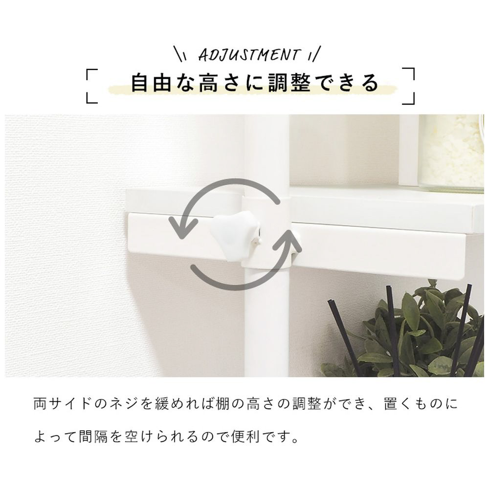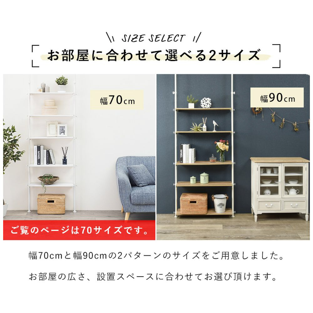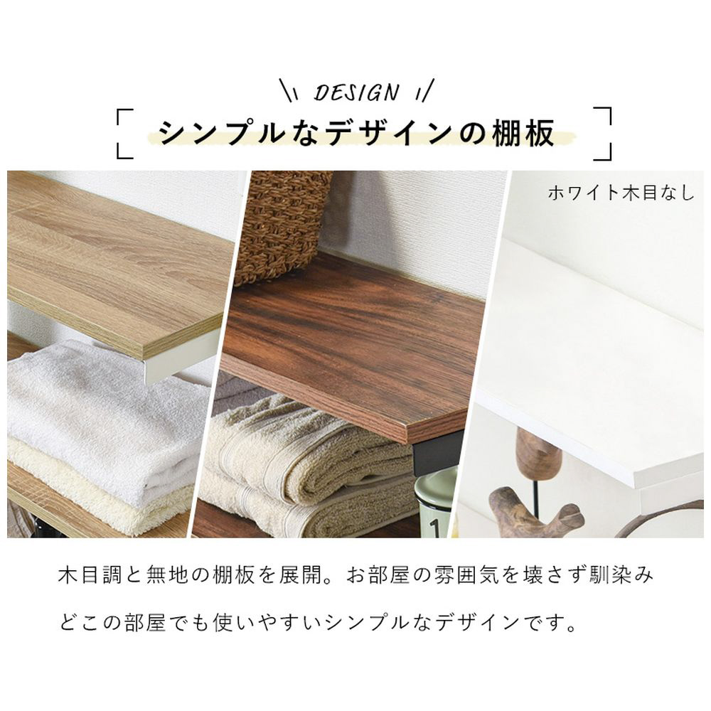 仕様1 ■フレーム: スチール、棚板: <ブラウン/ブラック>プリント紙化粧繊維板、<ナチュラル/ホワイト>プリント紙化粧繊維板、<ホワイト/ホワイト>メラミン樹脂化粧繊維板