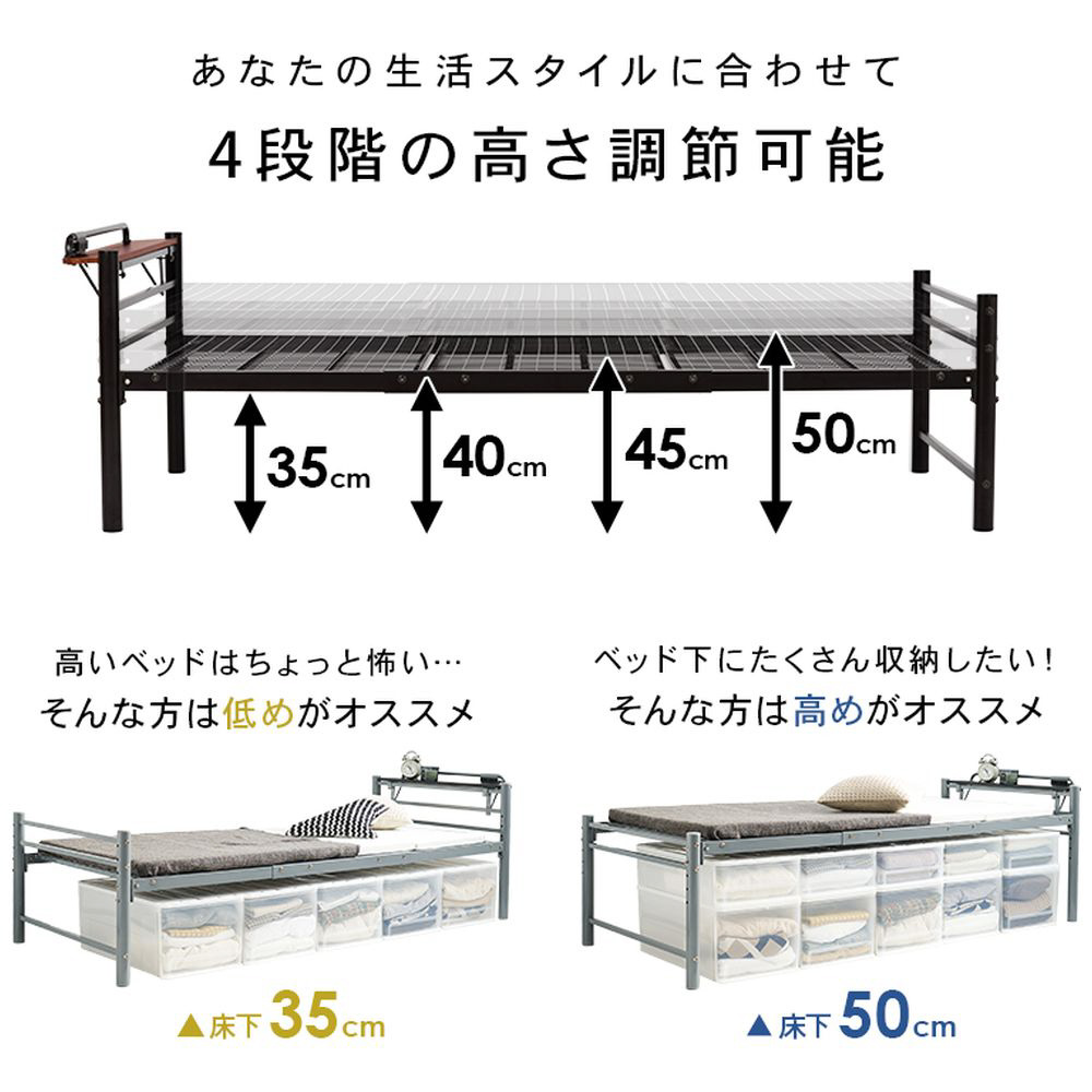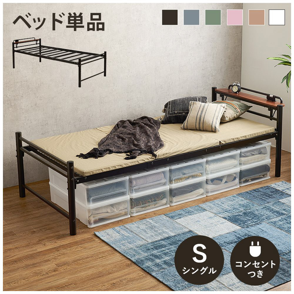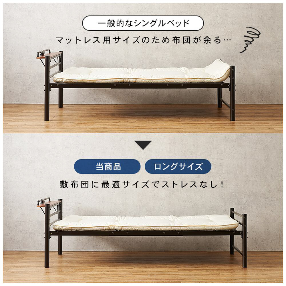 敷布団がそのまま使えるロングサイズ。宮棚が取り外せてカラーが豊富なオシャレなベッドです。