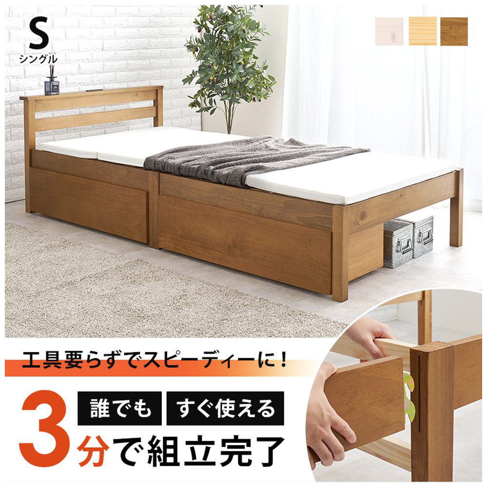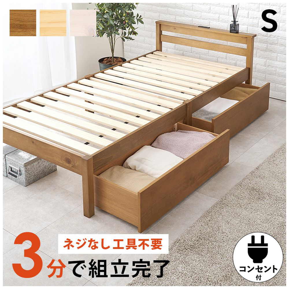 【フレームのみ】 組立簡単 宮付き引出し付ベッド プレーンナチュラル MB5150SNAHS [シングルサイズ]