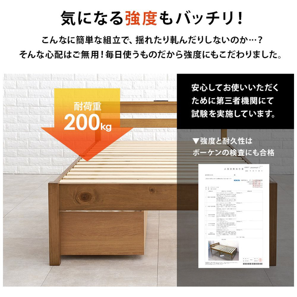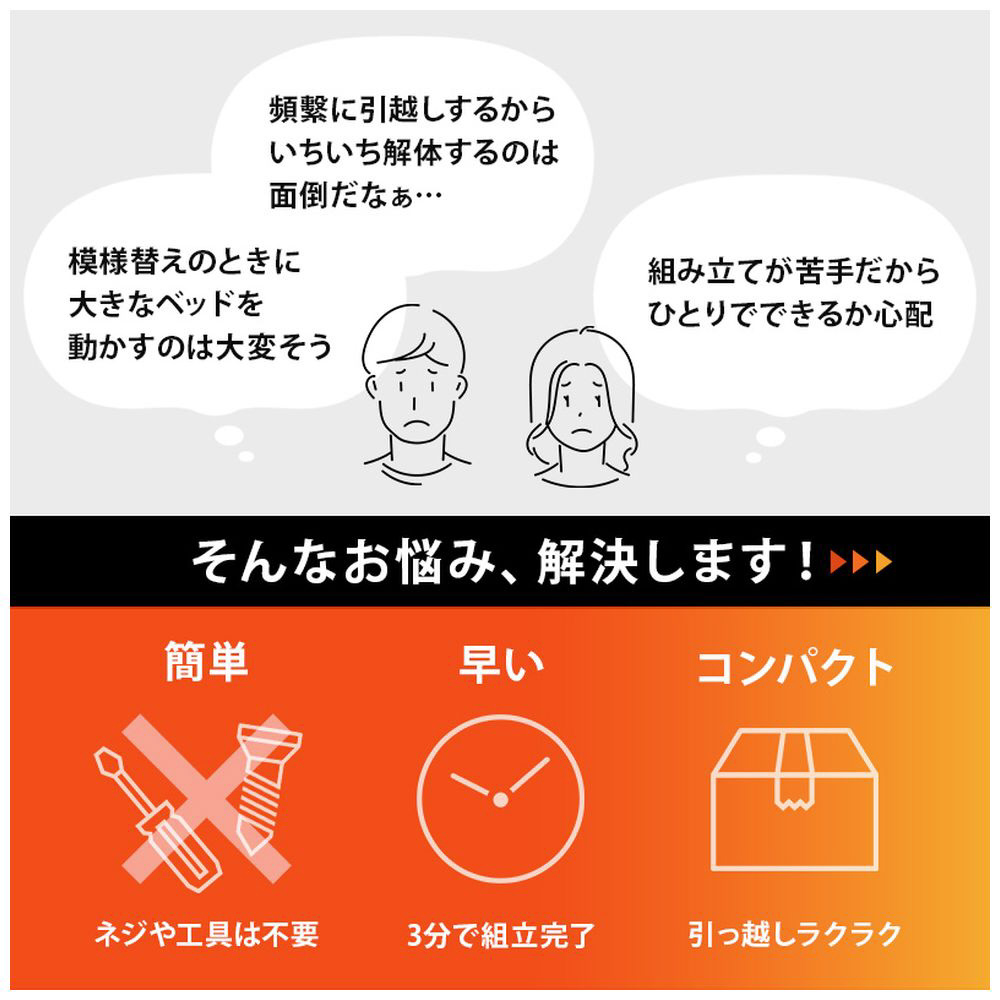 ネジなし、工具不要で簡単組立。模様替えや引っ越しにも便利な宮付きベッドです。大容量収納可能な引出し2杯付き