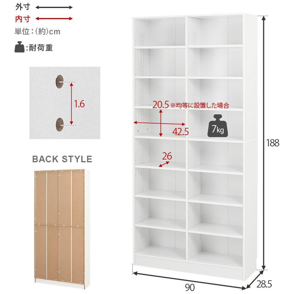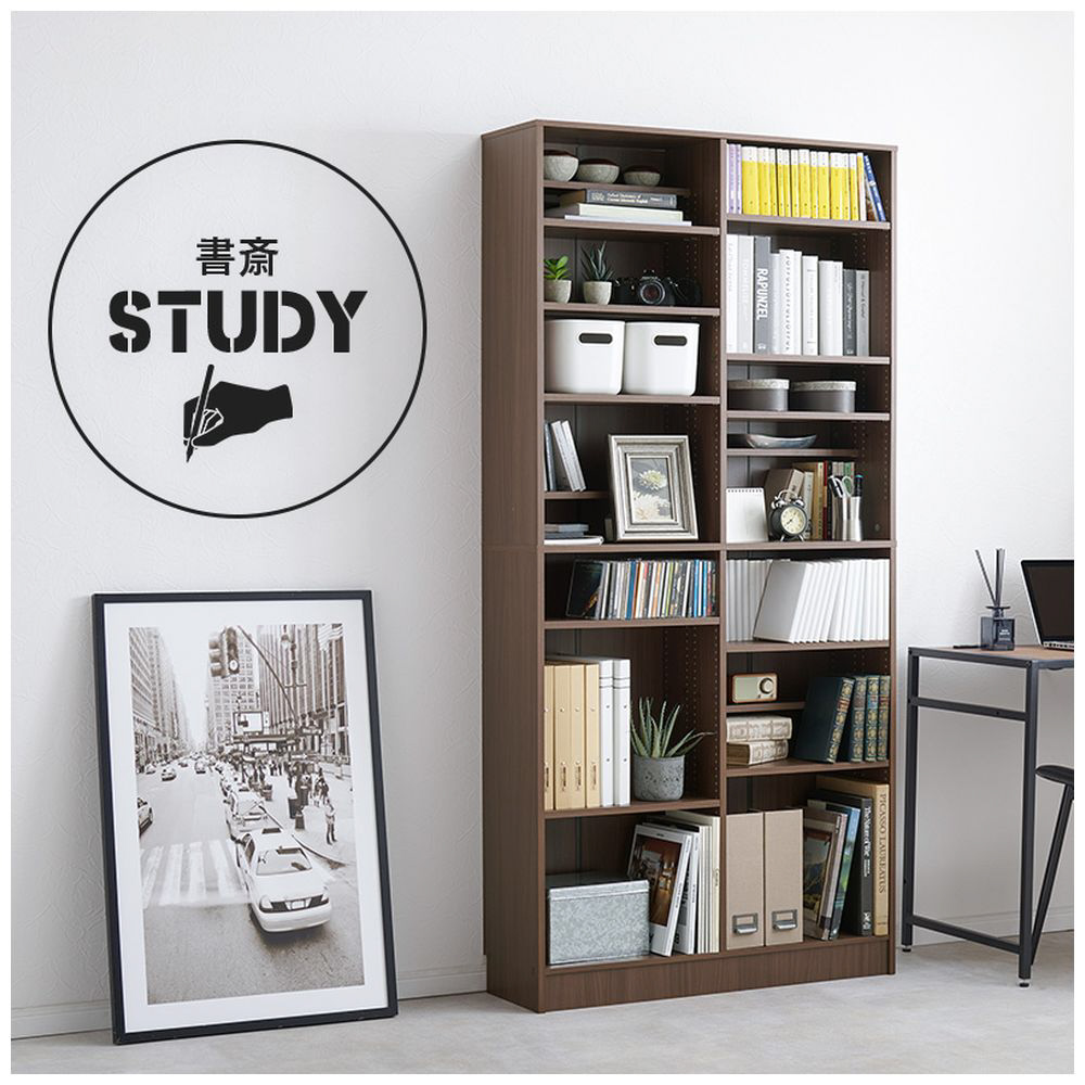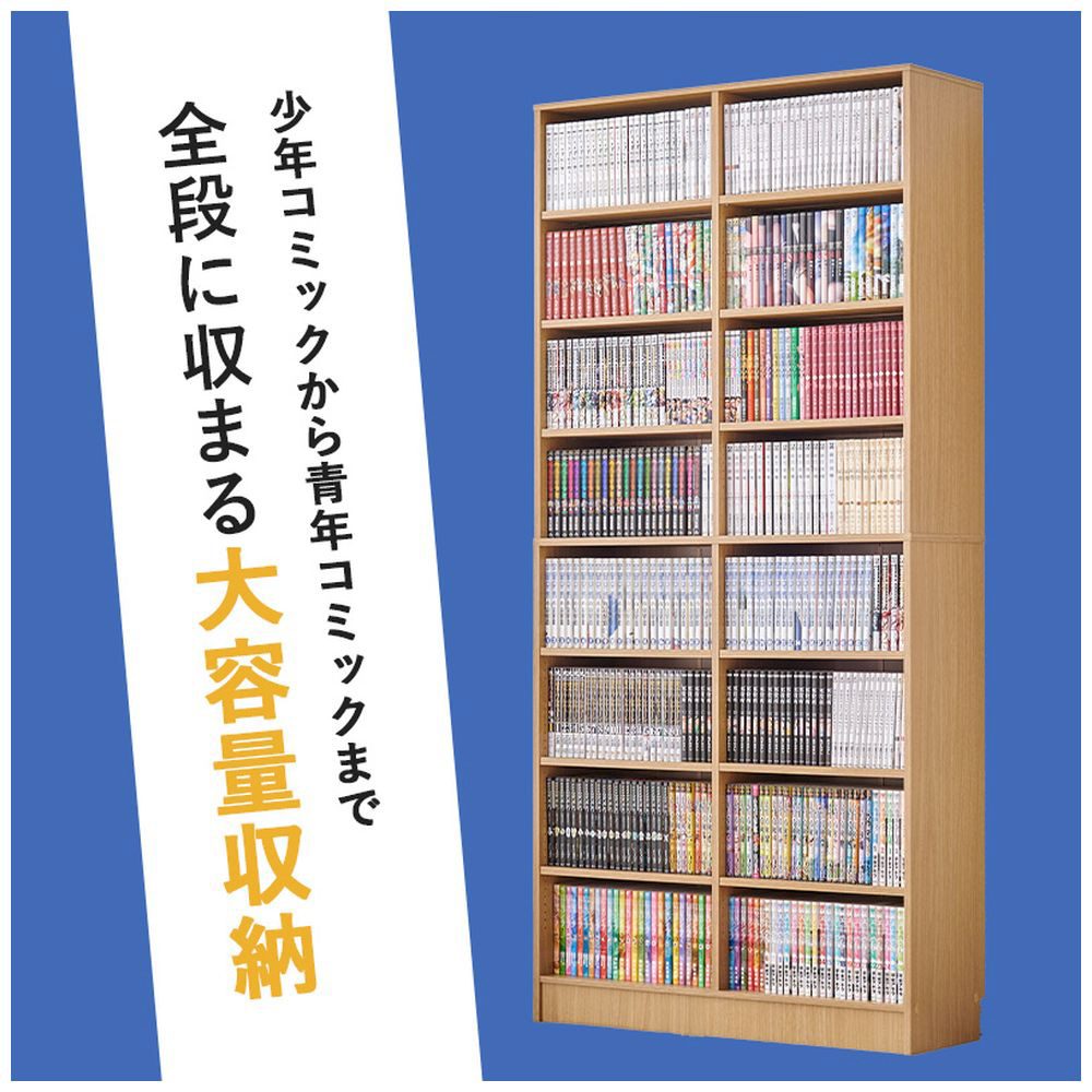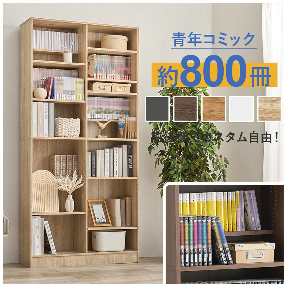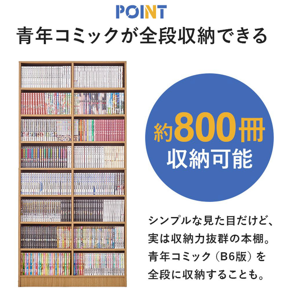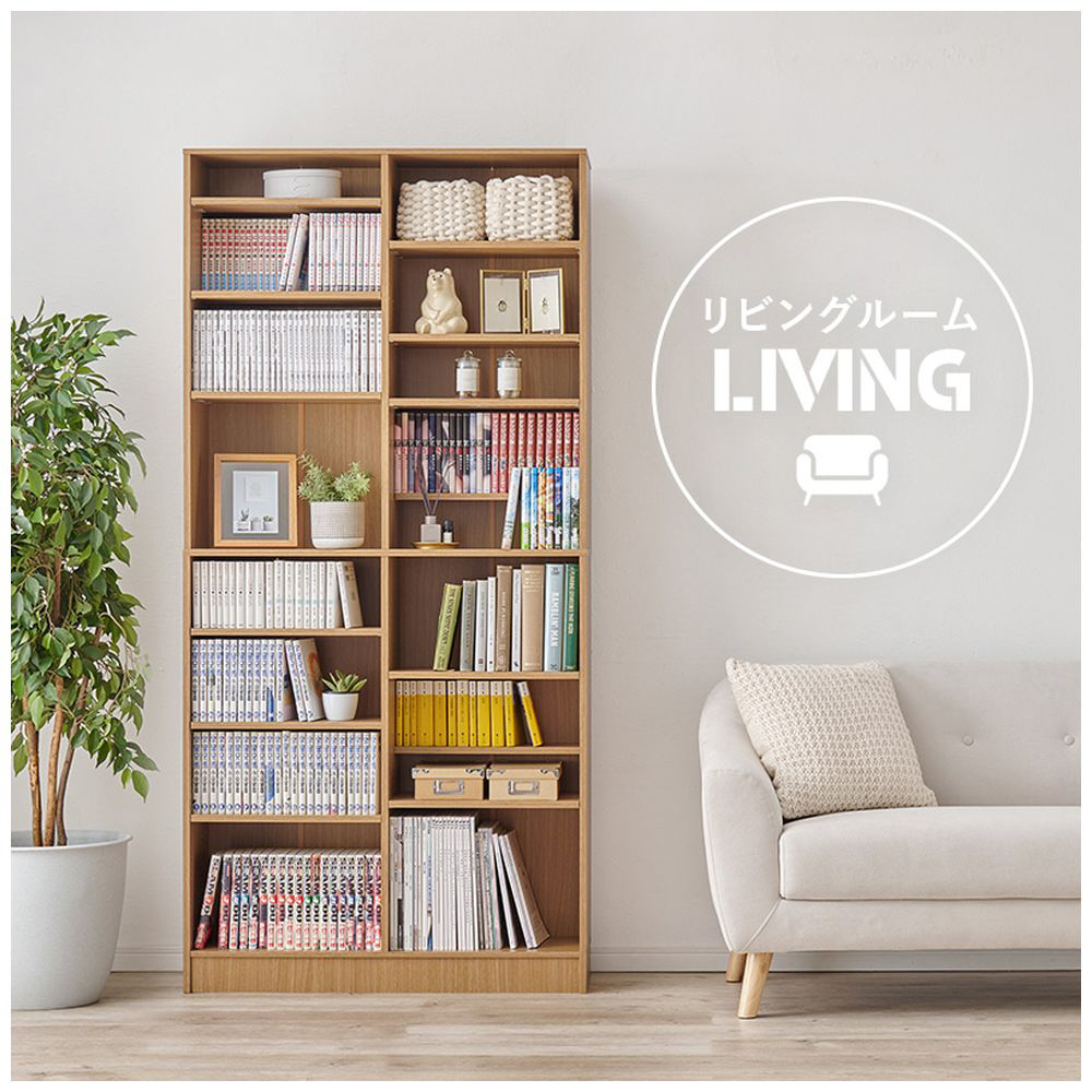 前後2列別々に棚板高さが変えられ、大容量収納できるマンガ好きの為の本棚