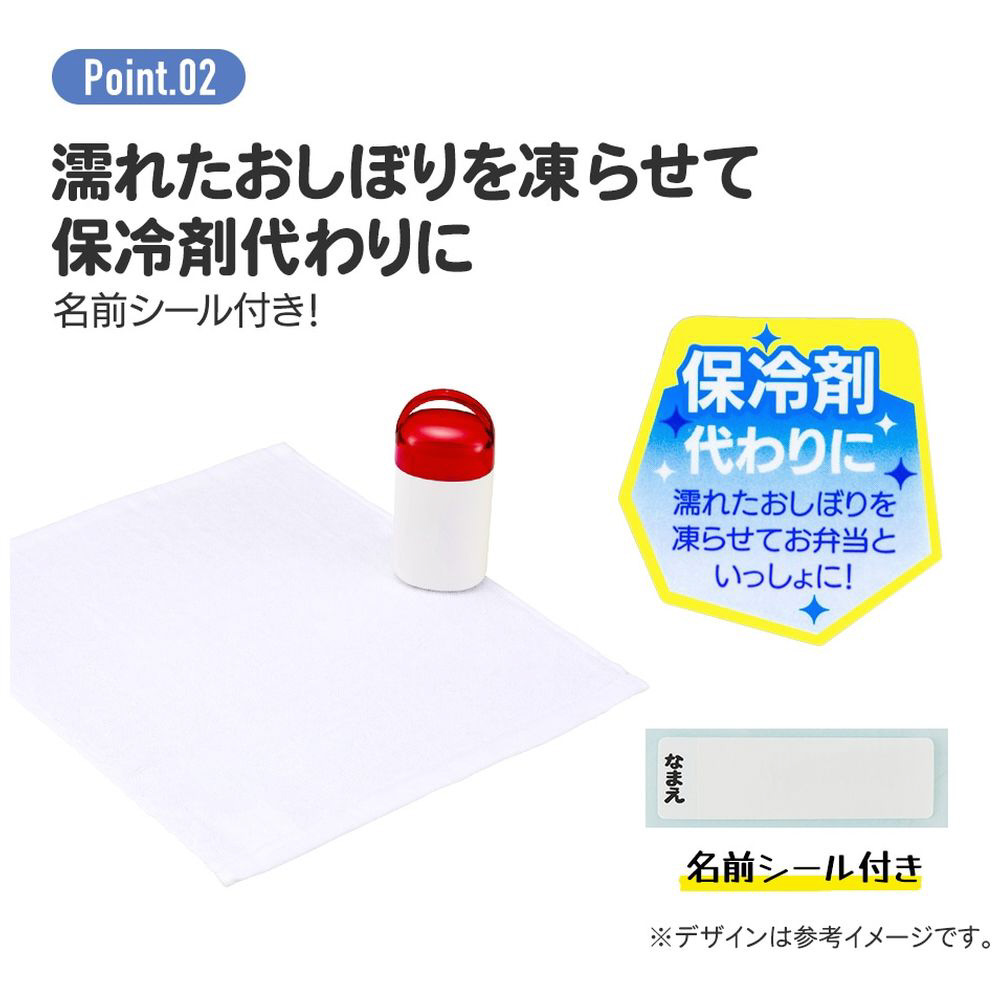 濡れたおしぼりを凍らせてお弁当と一緒に持つと保冷剤代わりになっておすすめです。