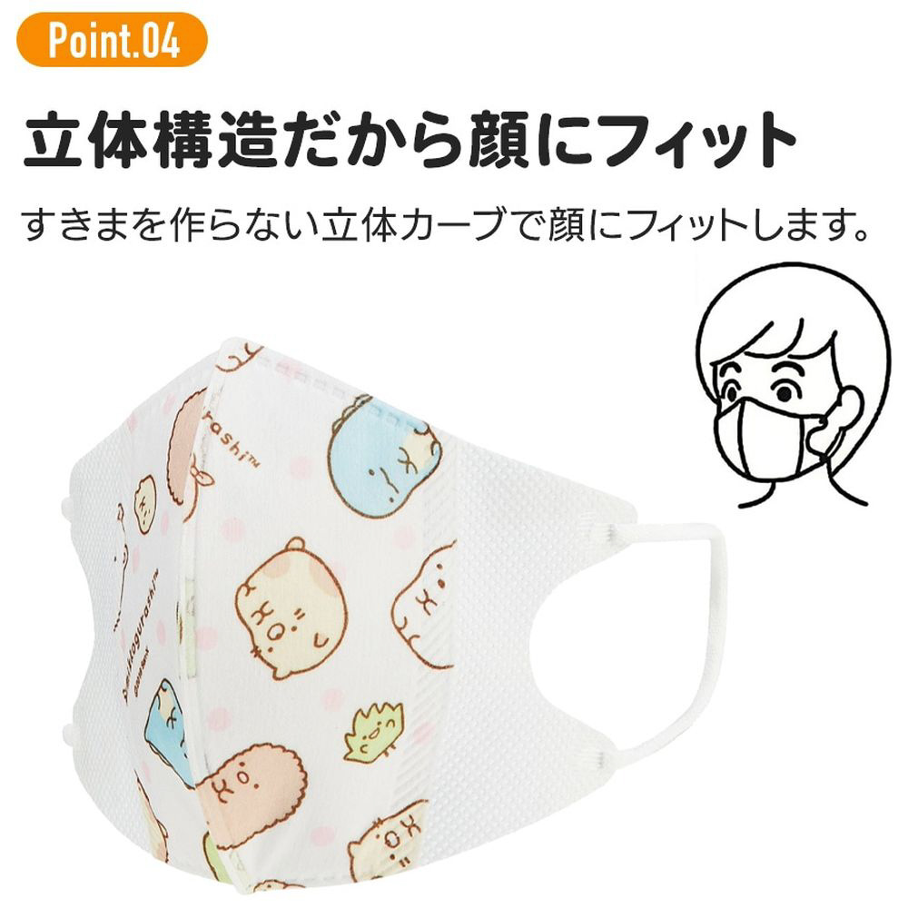 花粉・ホコリ・風邪対策に。1週間毎日使える7枚入り。可愛いキャラクター柄の子供立体マスクです。
