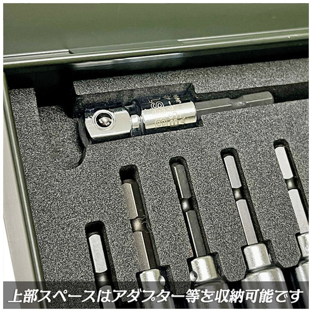 ・上部のスペースにはお手持ちのソケットアダプターやその他電動工具用の先端工具の収納が可能です。