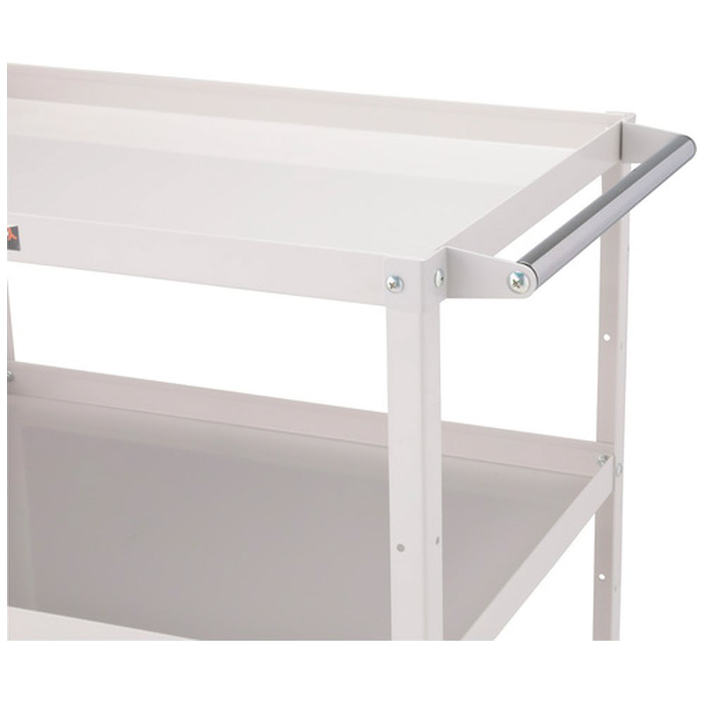 コンビニワゴンを移動する際にハンドルを保持することで収納物やワゴンの転倒リスクを軽減します。