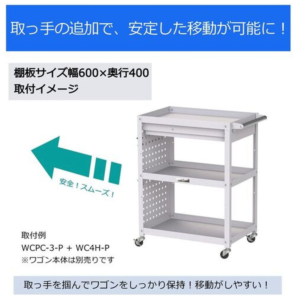 ■コンビニワゴンを移動する際にハンドルを保持することで収納物やワゴンの転倒リスクを軽減します。