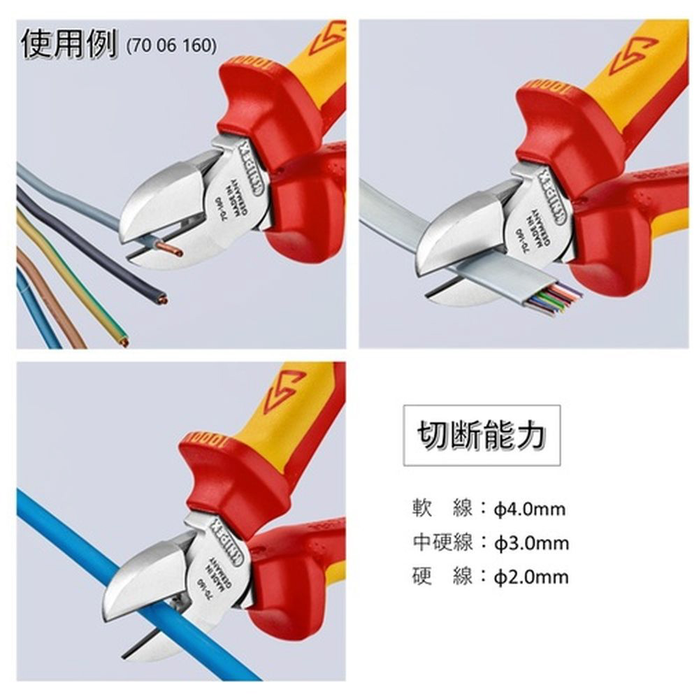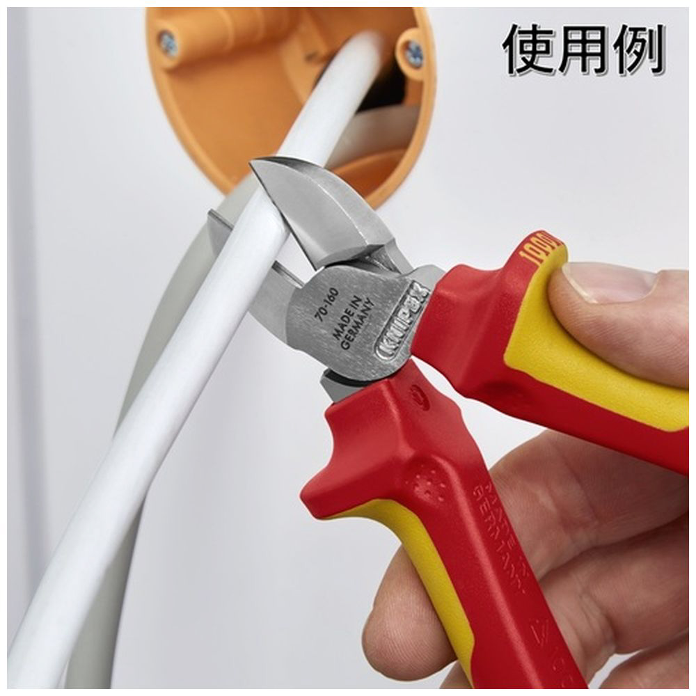 KNIPEX 絶縁電工ニッパー 1000V絶縁落下防止ハンドル 160mm