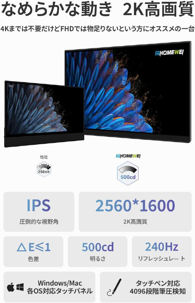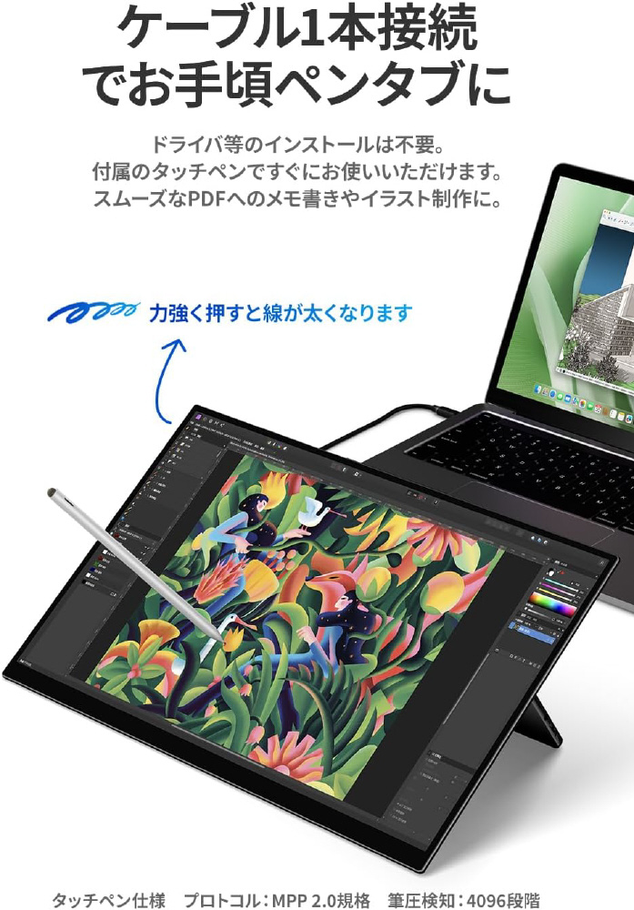 QLED 18インチ 2.5K 薄型 USB-C接続 タッチペン対応 PCモニター