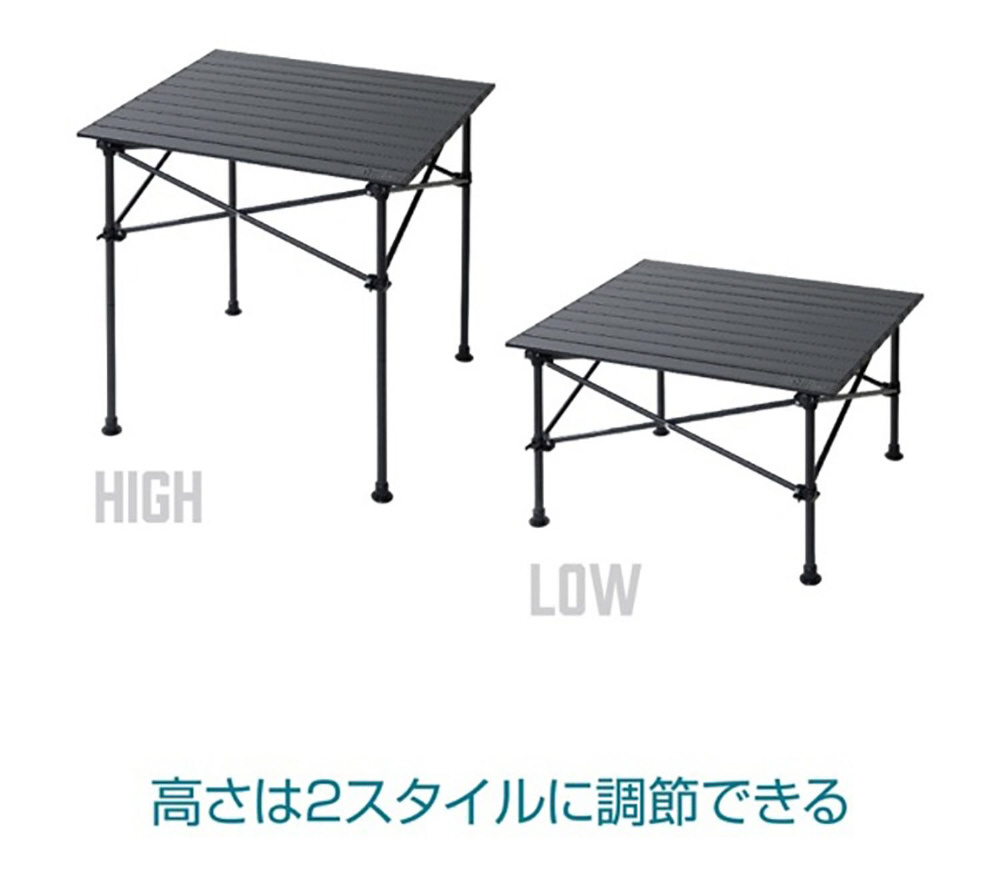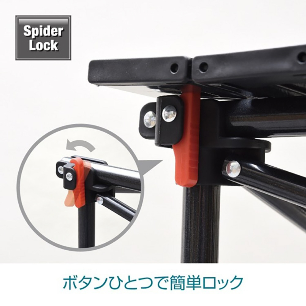 仕様:高さは2スタイルに調節できる。ハイスタイル高さ70cm。ロースタイル高さ40.5cm。天板はスパイダーロック機能によりボタンひとつで簡単ロック。キャリーバッグでコンパクトに持ち運び。