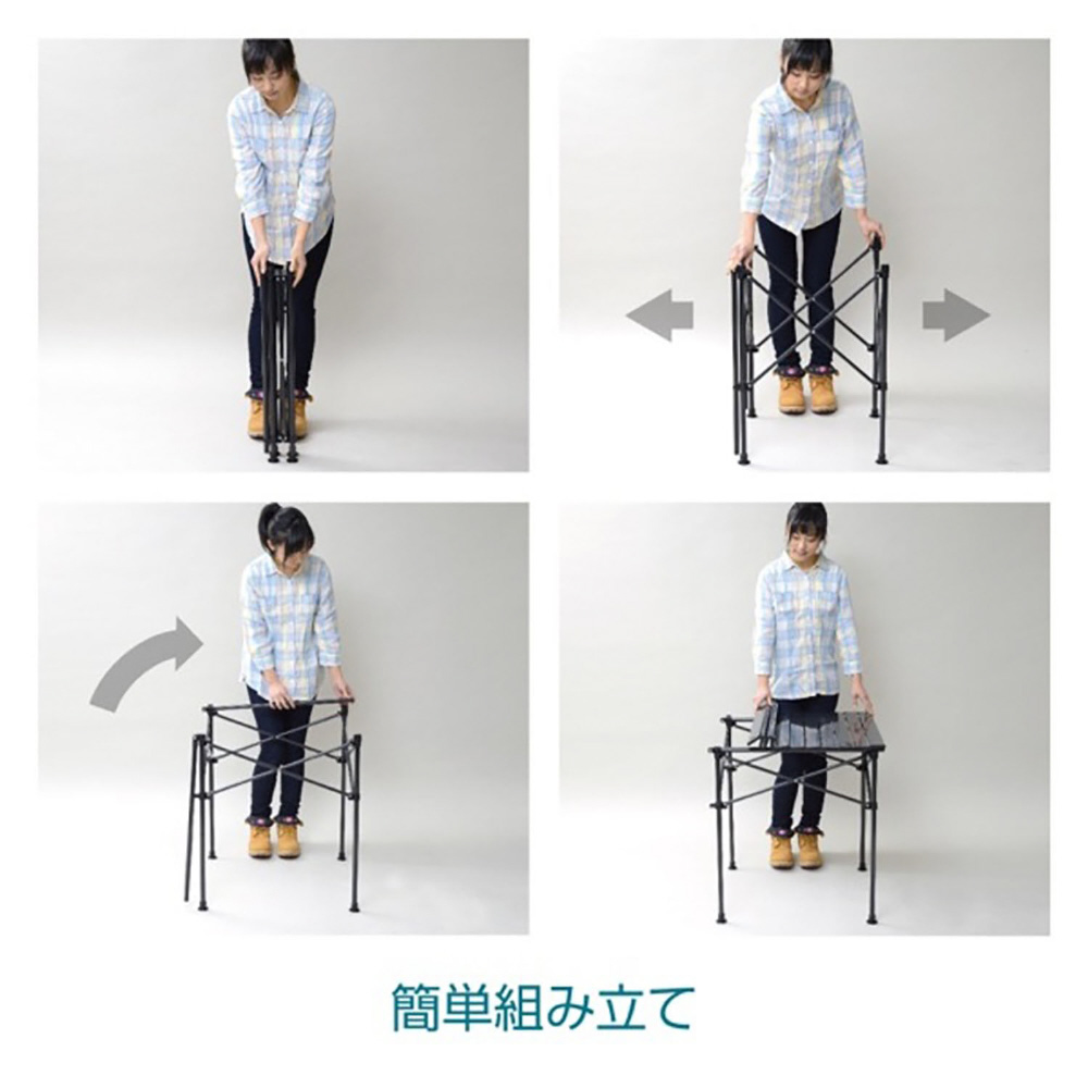 特徴:天板はアルミ製で軽量・耐水性も高いです。