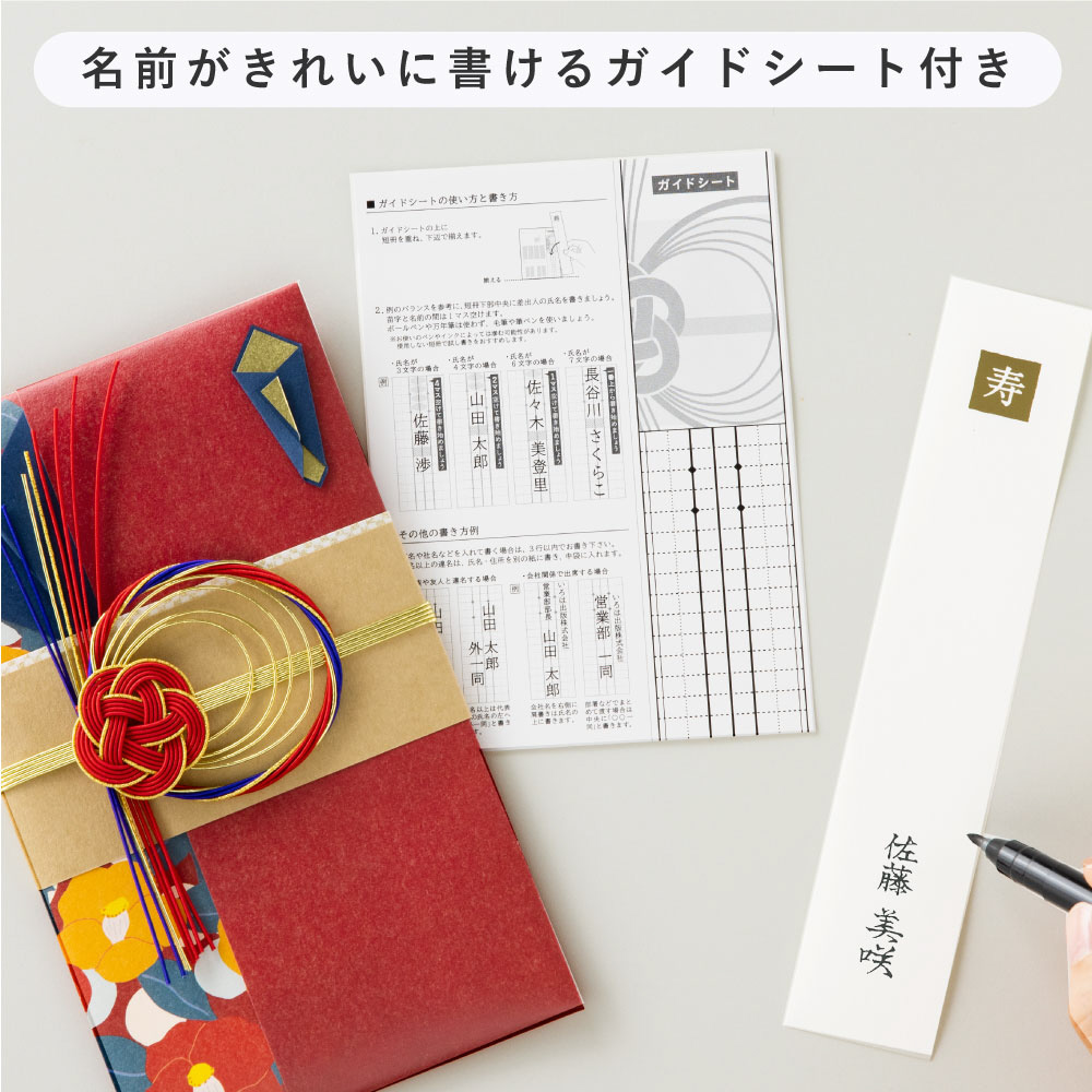 カジュアルすぎず程よくフォーマルなデザインです。名前が綺麗に書けるガイド付き。
