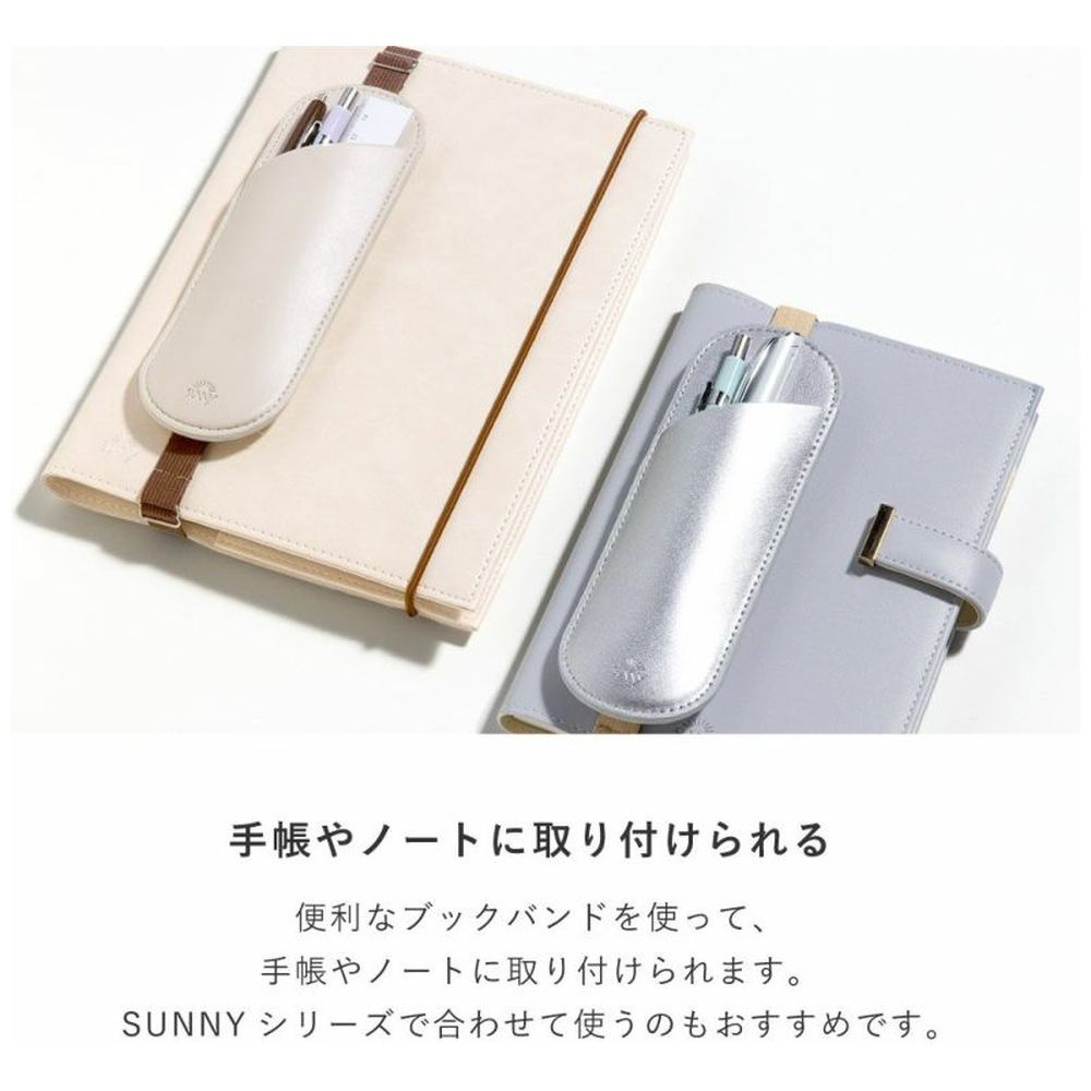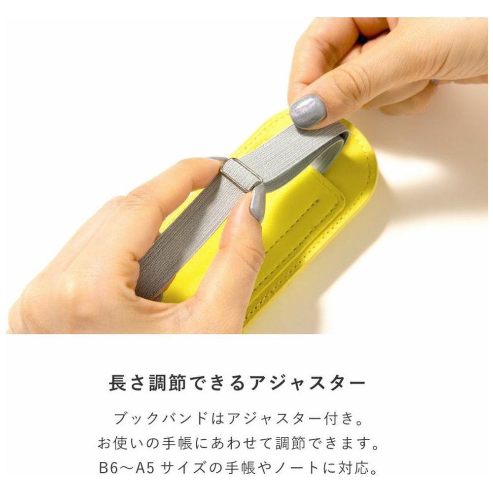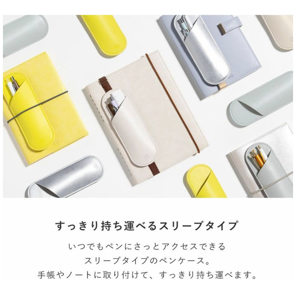 手帳やノートと一緒に持ち歩けるブックバンド付きペンスリーブ。