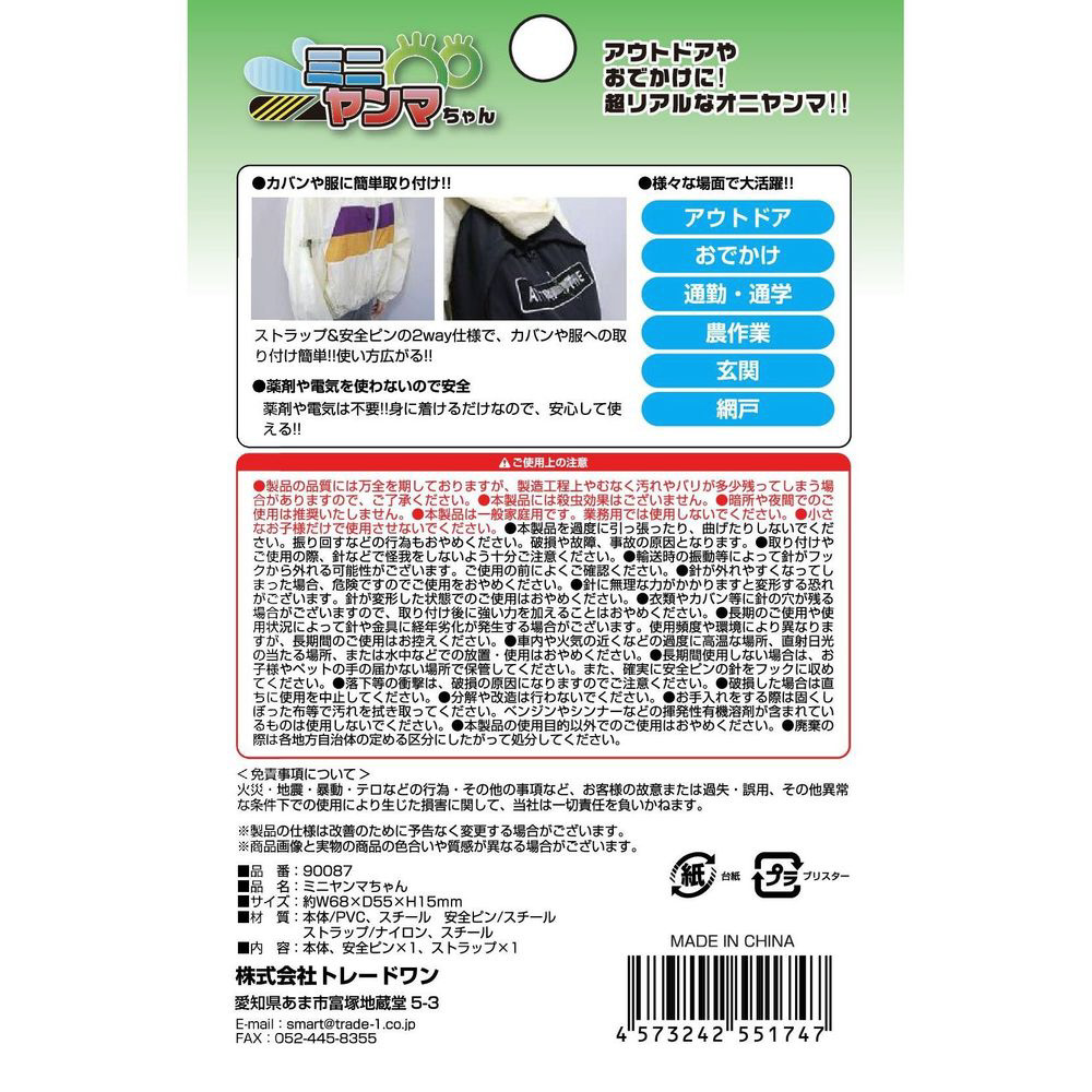 超リアルなオニヤンマで虫を寄せ付けない。付属のストラップ&安全ピンの2WAY仕様で、カバンや服への取り付けが簡単!使い方が広がります。薬剤や電気は使用していません。身に着けるだけなので、安心してお使いいただけます。様々な場面で活躍します。アウトドア・散歩・農作業・玄関・おでかけ・通勤・通学・納戸などに。【仕様】付属品:ストラップ、安全ピン